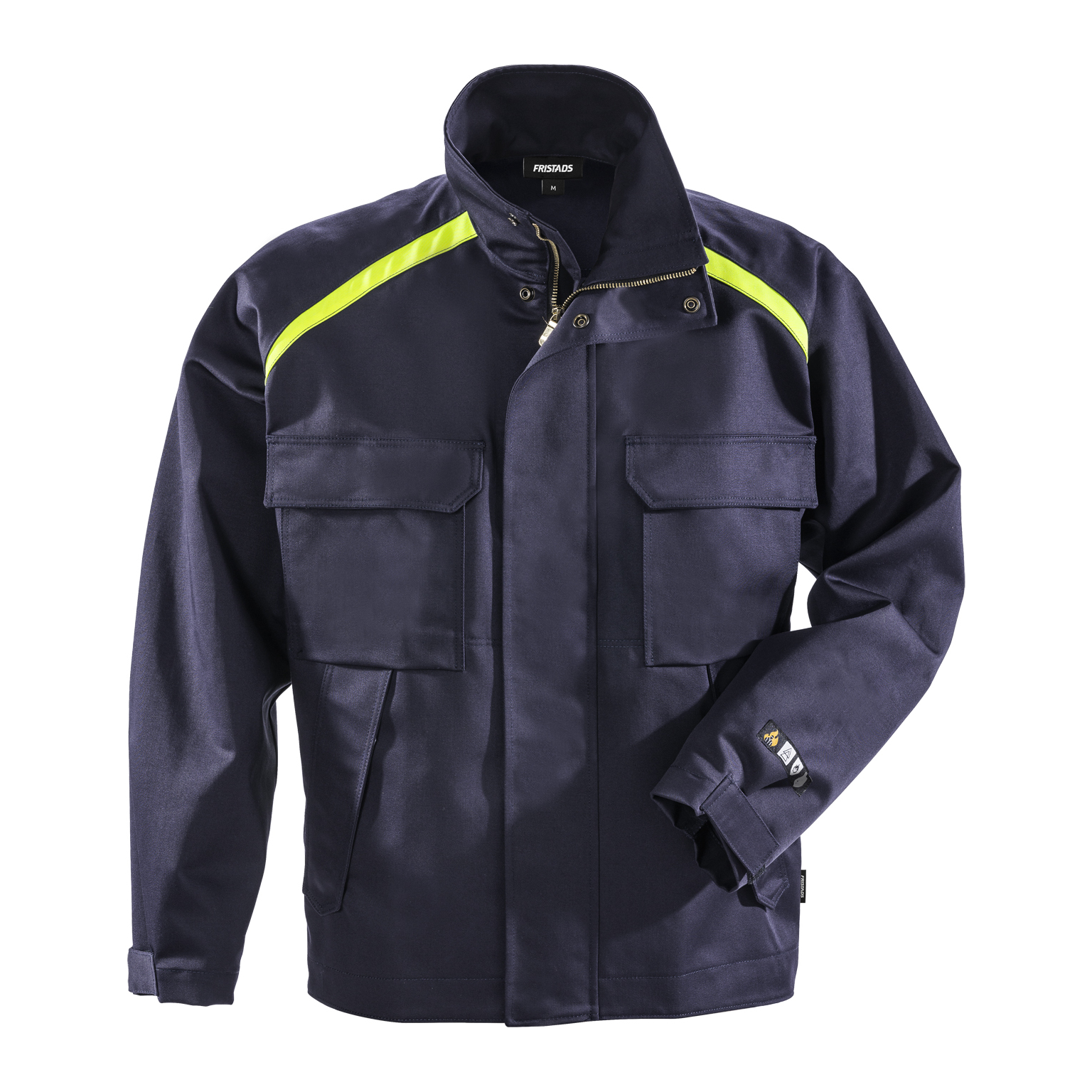 Ärmsluten är justerbara med kardborreband, och nederkanten kan regleras med knappar för en anpassad passform. Jackan har en förlängd rygg för extra skydd och komfort. Den är godkänd enligt flera säkerhetsstandarder, inklusive EN 61482-1-2 klass 1 och EN ISO 11612, vilket gör den lämplig för arbete i miljöer med risk för ljusbågar och flammor. Jackan är även certifierad för att klara upp till 50 tvättar och är testad för industritvätt enligt ISO 15797, vilket säkerställer hållbarhet och långvarig användning. Produkten är OEKO-TEX® certifierad, vilket innebär att den är fri från skadliga ämnen och säker för användning.