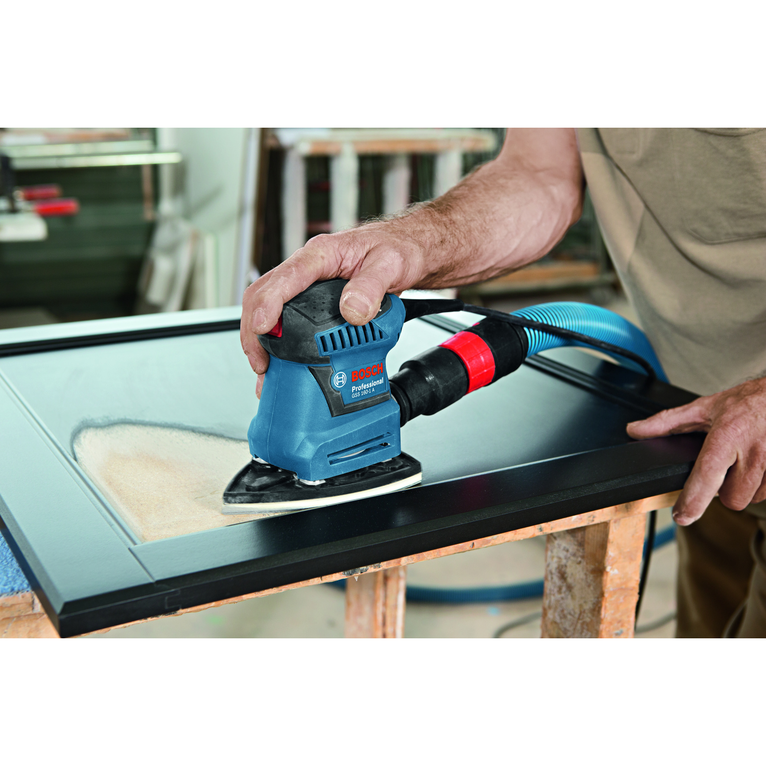 | Fastsättning slipmaterial | Kardborre/Klämma |
