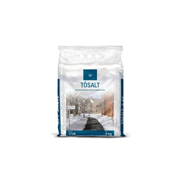 SP Tösalt 5kg är ett effektivt och snabbt verkande salt som används för att smälta is och snö på vägar, trottoarer och andra ytor under vinterhalvåret. Det är ett utmärkt val för att förbättra trafiksäkerheten och underlätta snöröjningen i både offentliga och privata miljöer. Saltet är speciellt framtaget för att ge bra effekt även vid lägre temperaturer och är effektivt vid förebyggande av isbildning samt snösmältning. Förpackningen på 5 kg gör det lätt att hantera och lagra, vilket gör det till ett praktiskt val för mindre områden eller hushåll.