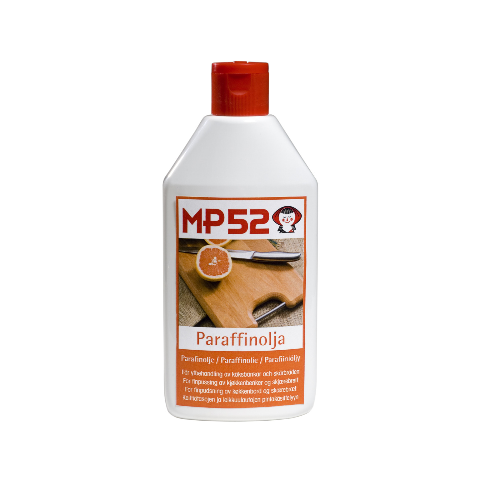 En icke torkande olja för ytbehandling av de flesta träslag inomhus. Ger ytan ett bra grundskydd utan filmbildning. MP52 paraffinolja har en medicinsk renhetsgrad vilket gör den särskilt lämpad för skärbrädor och köksbänkar. Innehåll Högraffinerad vit mineralolja med medicinsk renhetsgrad. Förpackning Plastflaska, 250 ml.