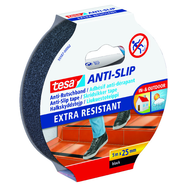 Halkskyddstejp med mineralpartiklar i vattenfast plastfilm. Användbar på trappsteg, ramper och vid maskiner. Tål vatten, alkohol och rengöringsmedel. Läs mer