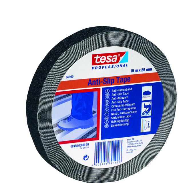 Halkskyddstejp med mineralpartiklar i vattenfast plastfilm. Användbar på trappsteg, ramper och vid maskiner. Tål vatten, alkohol och rengöringsmedel. Läs mer