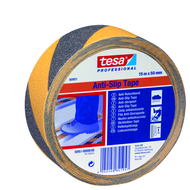 Halkskyddstejp med mineralpartiklar i vattenfast plastfilm. Användbar på trappsteg, ramper och vid maskiner. Tål vatten, alkohol och rengöringsmedel. Läs mer