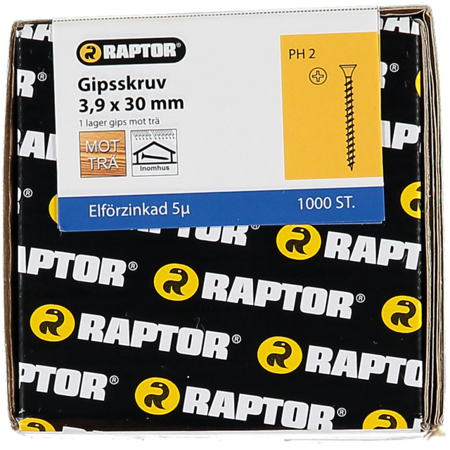 Gipsskruv avsedd för montering av gipsskivor mot träregel inomhus. Skruven är tillverkad av härdat stål med blankförzinkad ytbrhandling. Bits PH2.