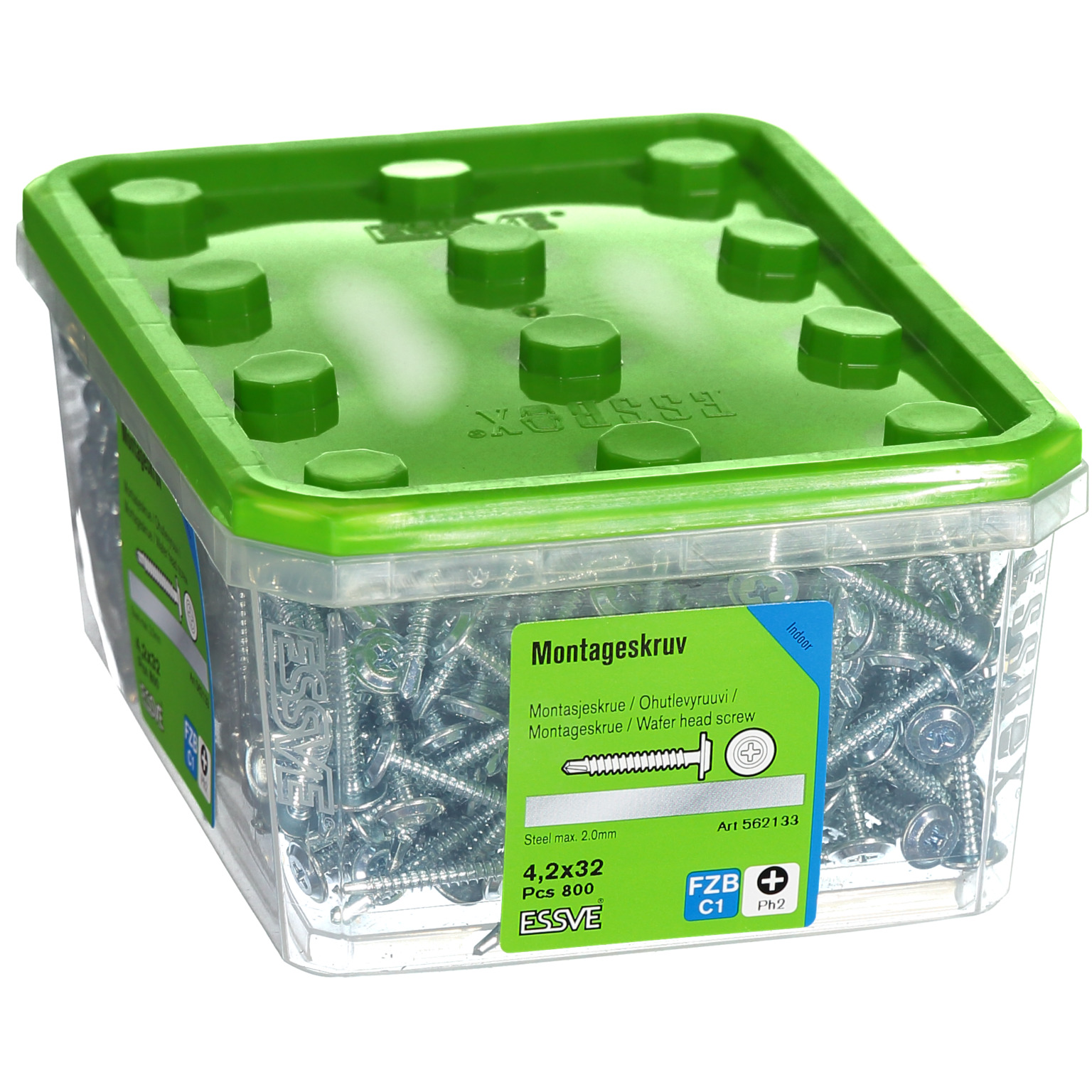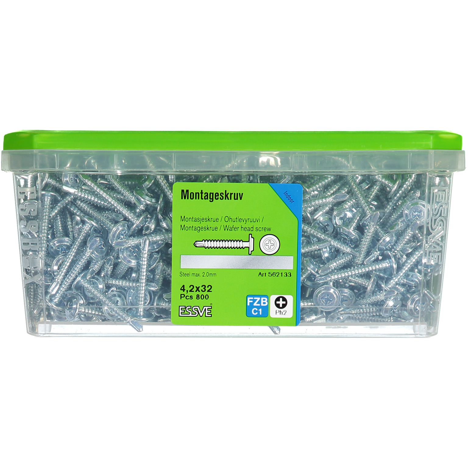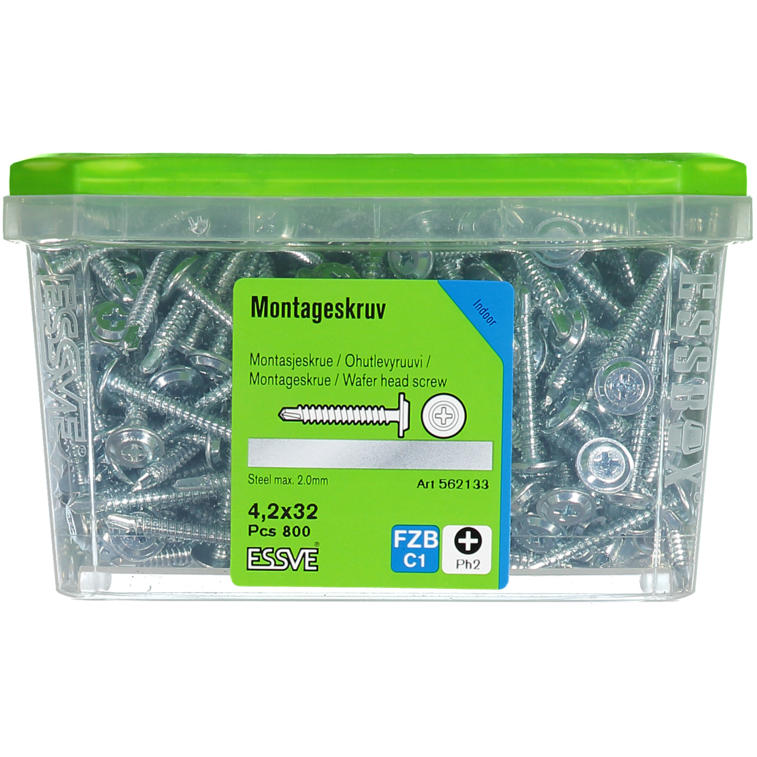 Montageskruv med borrspets avsedd för montering av skivmaterial, mot stålregel. Borrkapacitet 0,7-2,0 mm. Skruven är tillverkad av härdat stål med blankförzinkad ytbehandling. Den är försedd med Philips krysspår Ph2.