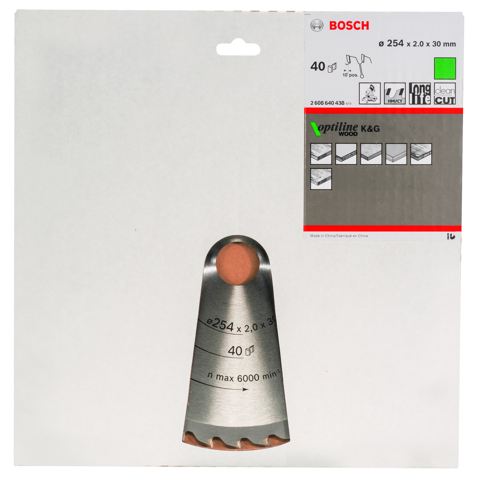Optiline Wood cirkelsågklinga för alla sorters trä och trämaterial. Beroende på antalet tänder kan du få olika resultat med alla Optiline Wood cirkelsågklingor som har ATB-tandgeometri (Alternate Top Bevel): klingor med många tänder ger rena snitt, medan klingor med få tänder garanterar solida och effektiva snitt.
