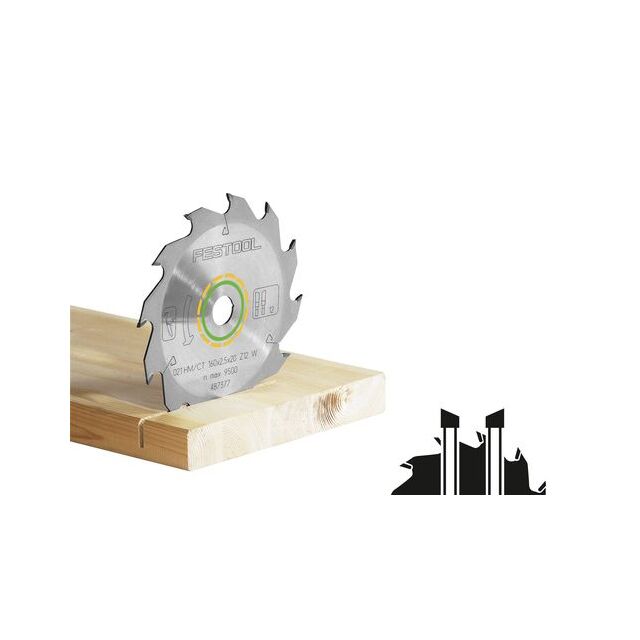 Den är förstärkt med hårdmetall och växeltandad (W) för snabb sågning i massivt trä och spånskivor. Tillverkad av högkvalitativt stål med tänder av extremt finkornig hårdmetall.