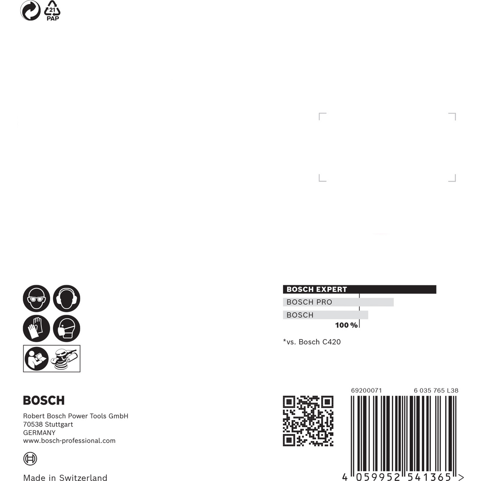 Slippapper med 8 hål för högeffektiv snabbslipning av plana ytor, för att ta bort gammal färg eller för att jämna till, förbereda och slutbehandla ytor. Upp till 2 gånger effektivare än Bosch C420-slippapper.