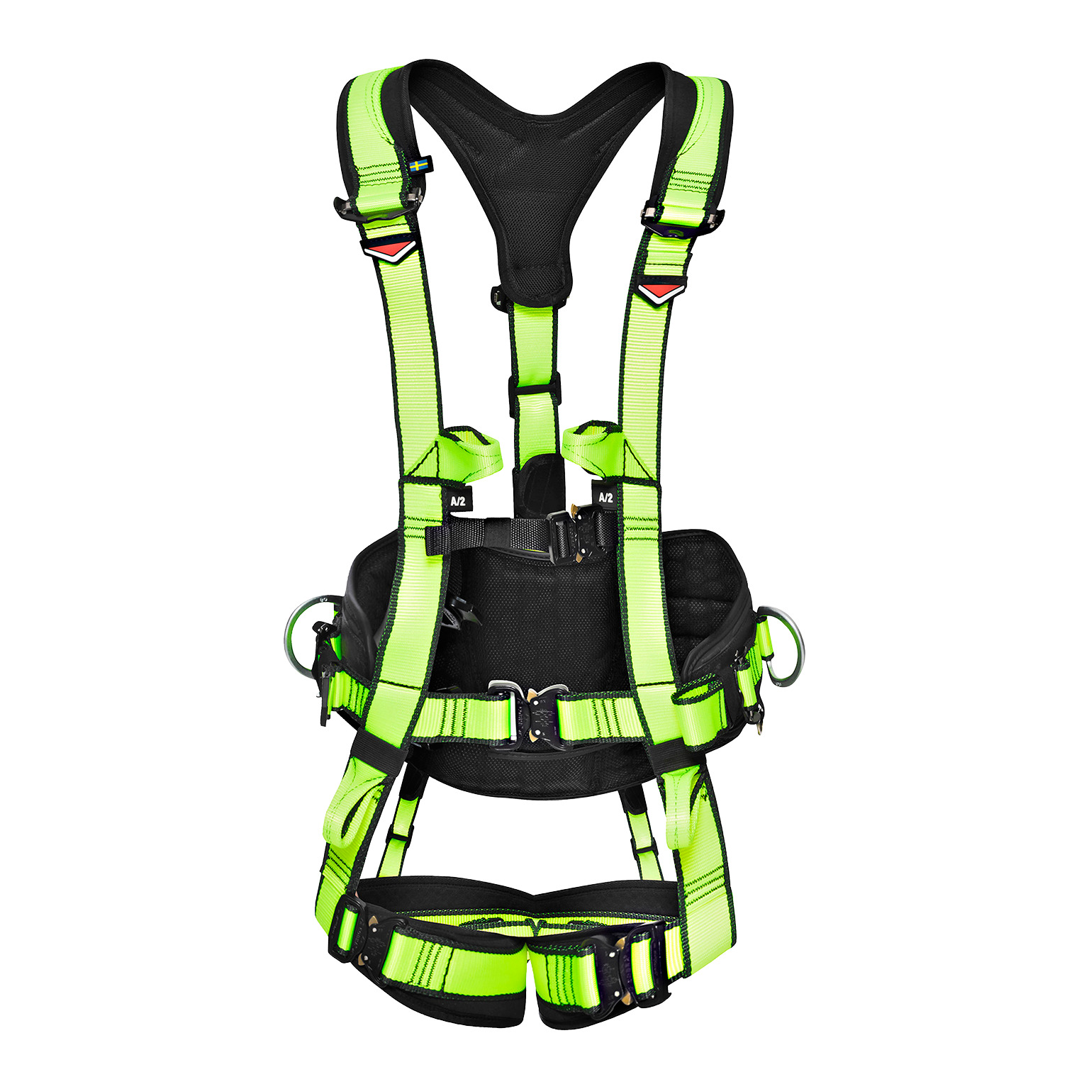 Denna sele är utvecklad med och för industriella mast- och stolparbetare. Fokusen i selens design ligger på ergonomi och komfort. Allt för att användaren skall kunna utföra sitt arbete så effektivt och säkert som möjligt. Helt öppningsbar för enklare på- och avtagning. Selen är gjord för att kunna bäras under en hel arbetsdag utan hinder. Selen är utrustad med verktygshållare i stödbältet och har plats för verktygsfickor. Vi har även lämnat en perfekt plats för en personlig räddningsutrustning, likt ”Smartline” på ryggdelen i bältet.