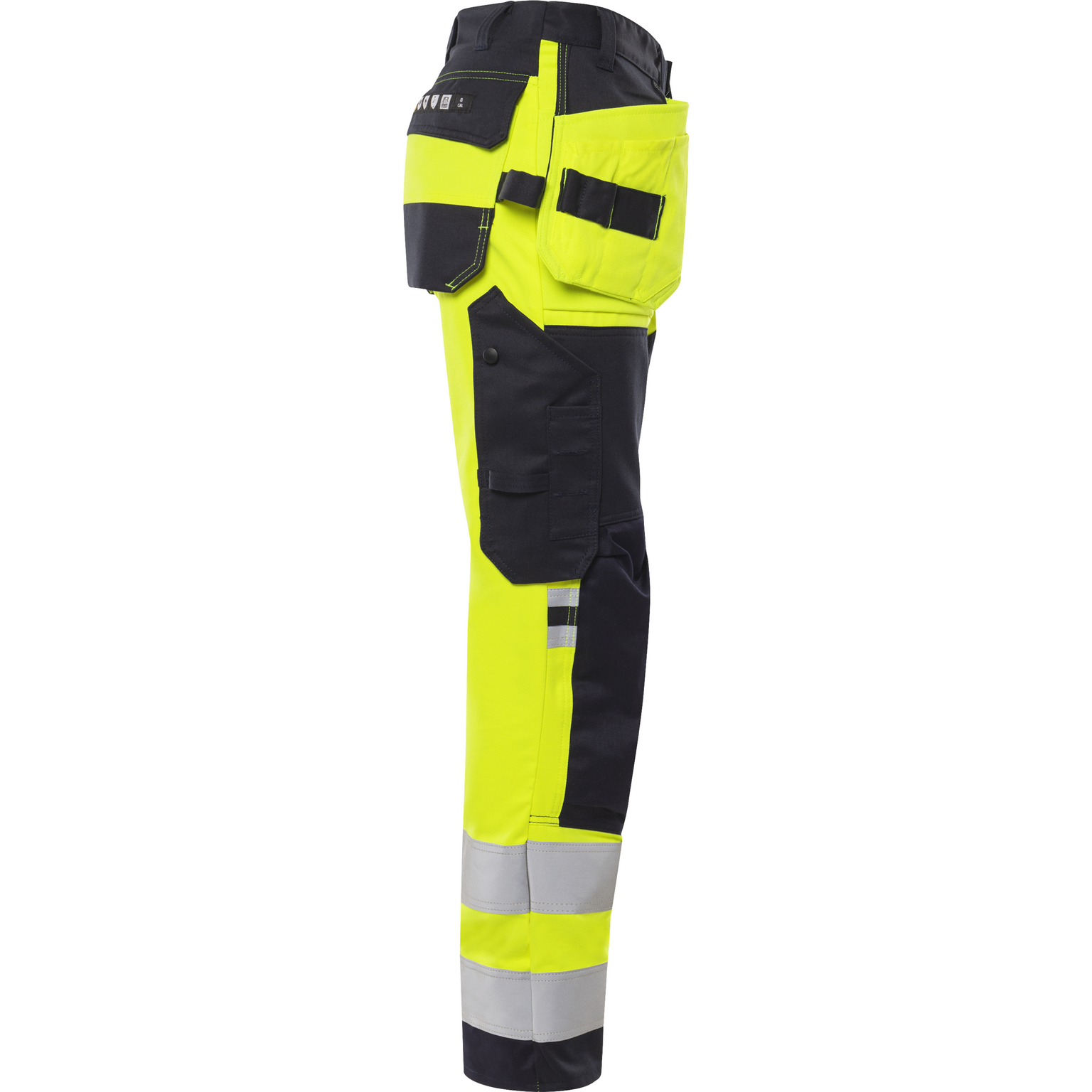 Stretchmaterial / Multinorm / Inherent flamskydd / Smuts-, olje- och vattenavvisande / 2 framfickor / 2 CORDURA®-förstärkta löst hängande fickor, den ena med 3 fickor och verktygshällor och den andra med extra ficka / 2 CORDURA®-förstärkta bakfickor, varav en med lock och dold tryckknapp / Dubbel förstärkt grensöm / Hammarhank / CORDURA®-förstärkt tumstocksficka med pennficka samt knapp och hälla för kniv / Benficka med lock och dold tryckknapp, telefonficka med lock och kardborrelås och D-ring under locket / CORDURA®-förstärkta knäfickor med öppning inifrån / Knäskydden i knäfickorna kan höjdjusteras / CORDURA®-förstärkning i benslut / Reflexerna är påsydda med 2-nålssöm / Godkänd enligt EN 61482-1-2 APC 1, EN 61482-1-1 ELIM: 8 cal/cm² EBT: 9,6 cal/cm² (se ljus­bågetabell för certifierade plaggkombinationer av EN 61482-1-2 klass 2 och EN 61482-1-1), EN ISO 11612 A1 B1 C1 F1, EN 1149-5, EN ISO 20471 klass 2, EN 14404 tillsammans med knäskydd 124292 (9200 KP) och tyget är godkänt enligt EN 13034 / Godkänd efter 50 tvättar / Testad för industritvätt enligt ISO 15797 / OEKO-TEX®-certifierad.