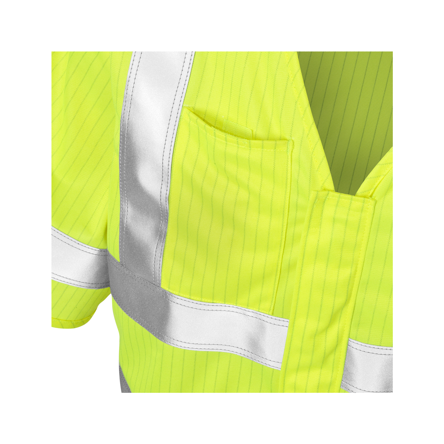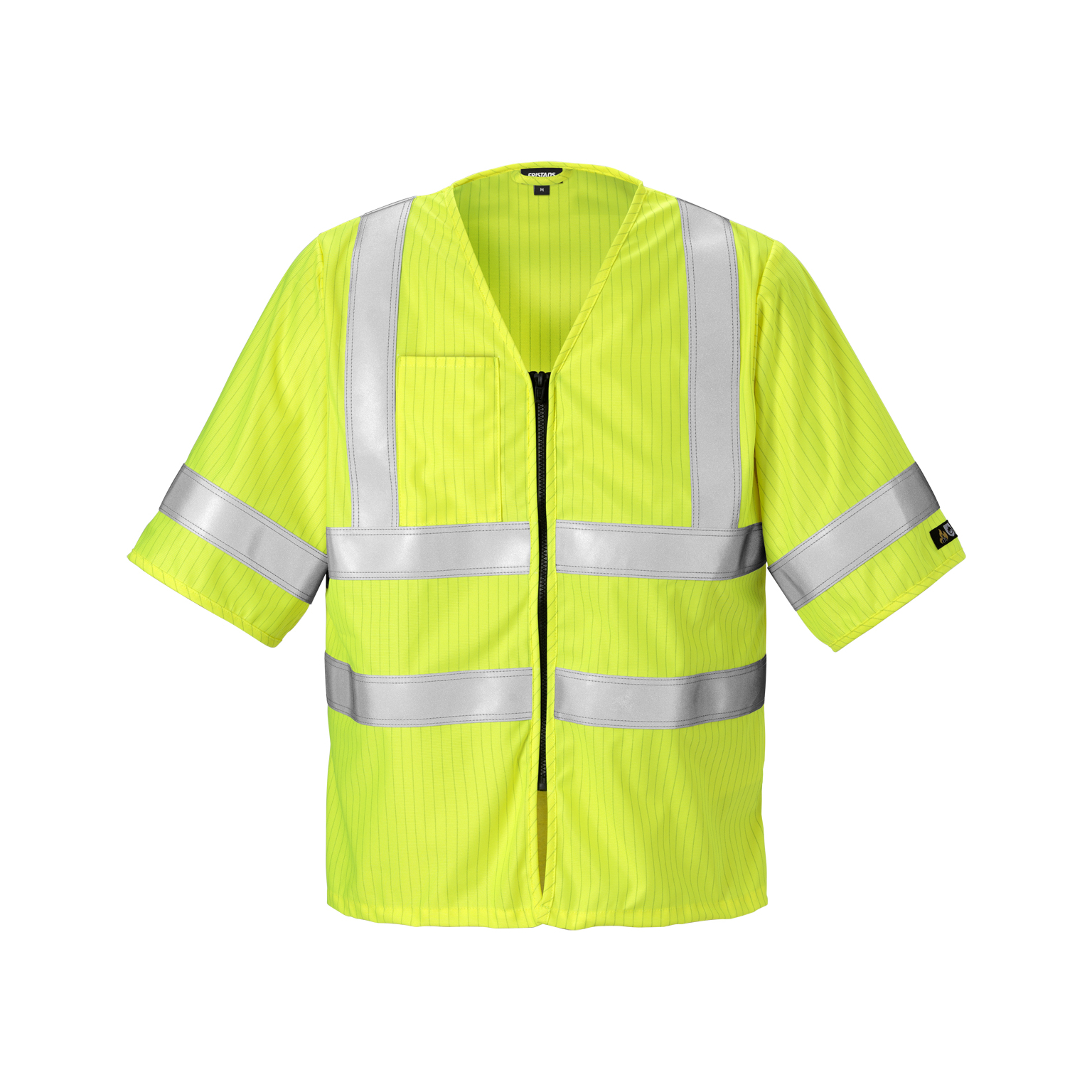 Flamskyddad varselväst i material med antistatiska egenskaper. Ska bäras över andra flamskyddade plagg.