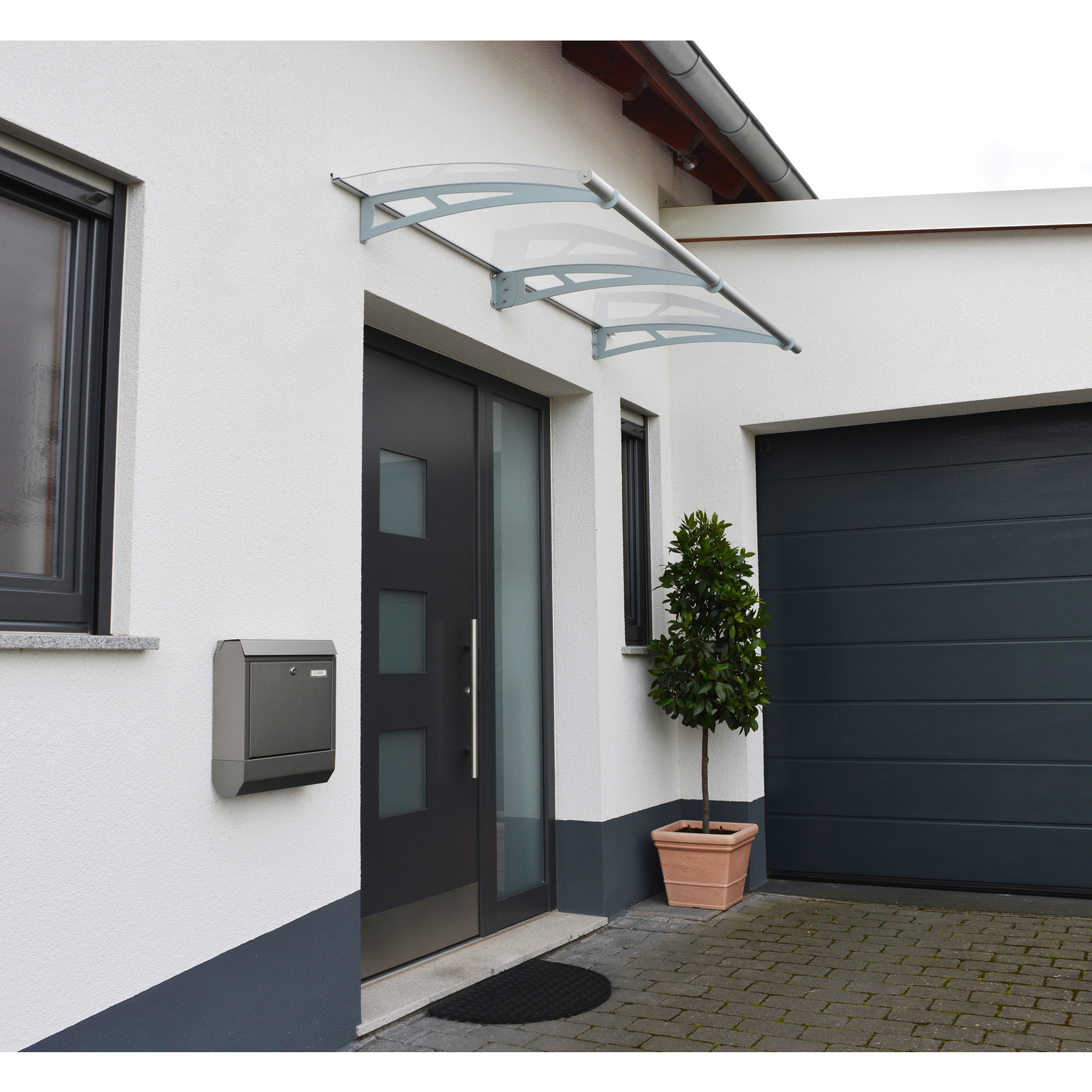 Dekorera din entré med en elegant taklösning. gop Stratus är ett underhållsfritt och lättmonterat entrétak av hög kvalitet som ger ett utmärkt skydd vid entréns ytterdörr, fönster, altandörr eller liknande och är motståndskraftigt mot vårt skandinaviska klimat året om. Takskivan består av en slagtålig 4 mm klar akrylskiva med 100% UV-skydd. Slitstarka, rostbeständiga aluminiumprofiler och robusta pulverlackerade galvaniserade stålkonsoler håller takskivan på plats. Effektiv ränna i takets framkant leder regnvatten åt sidan. Dold gummitätning i takets bakkant tätar mot vägg. Entrétaket finns i flera bredder.