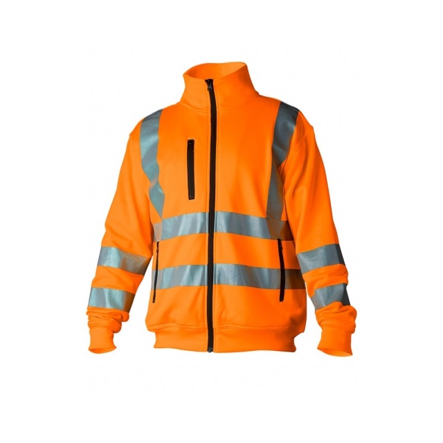 Sweatshirt i varselfärg med krage och hel dragkedja. Utrustad med flera fickor och reflexdetaljer. Mudd i nederkant och ärmslut. Läs mer