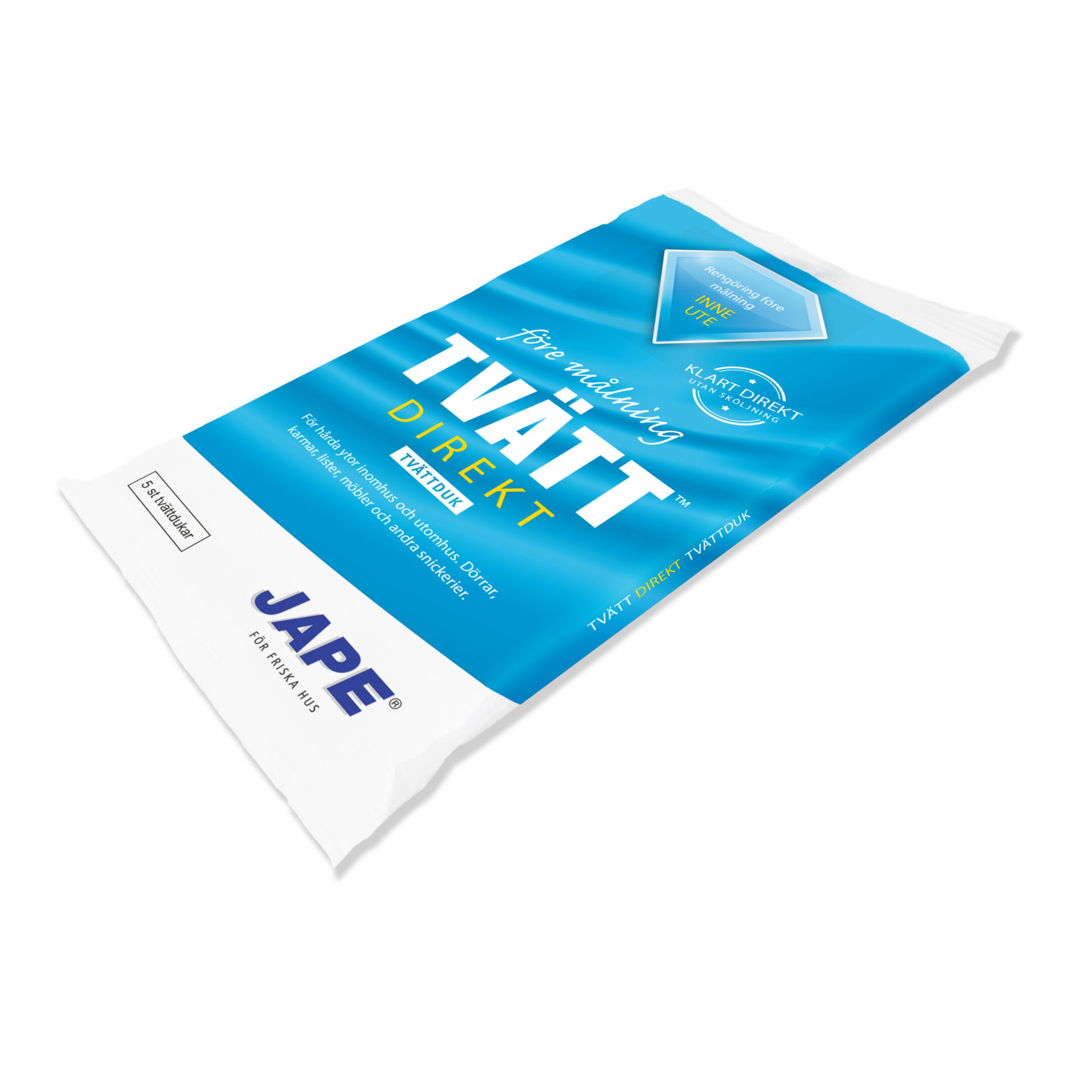 Engångstvättduk impregnerad med effektivt rengöringsmedel. För rengöring av hårda ytor både inom- och utomhus före målning. Ger ett utmärkt underlag utan behov av sköljning eller avtorkning.