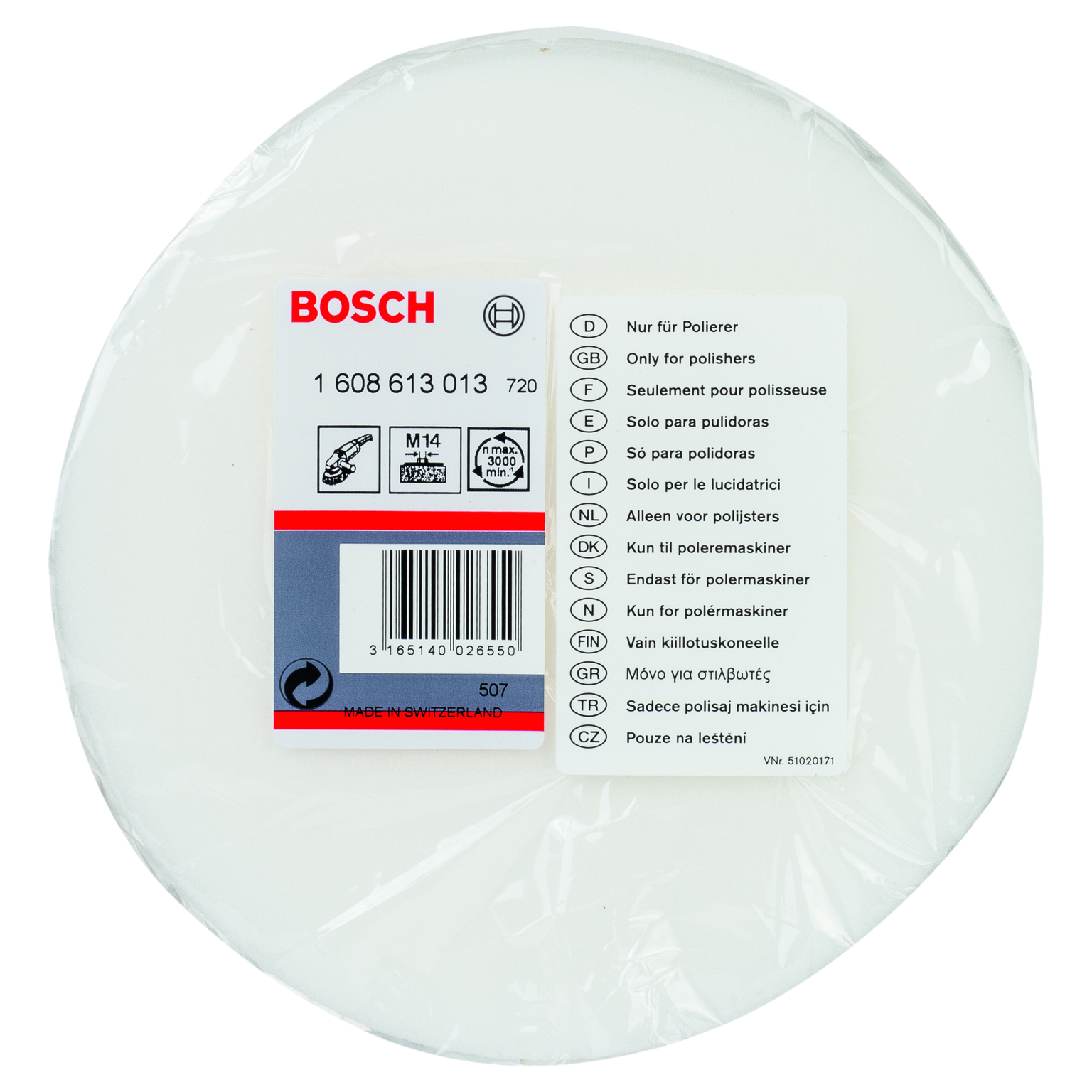 För vaxning och polering - Polersvampen för polermaskiner är avsedd för att gnida in vax och polera många olika typer av material, såsom väderslitna färger, sten, plast och järnfria metaller. Den är också idealisk för polering av smutsade, repiga eller förpolerade ytor. Den är lämplig för användning med polermedel eller för att arbeta in tätningsmedel på jämna eller rundade ytor. Avsedd för användning med polermaskiner. Passar alla maskiner med kardborre oavsett hålbild.