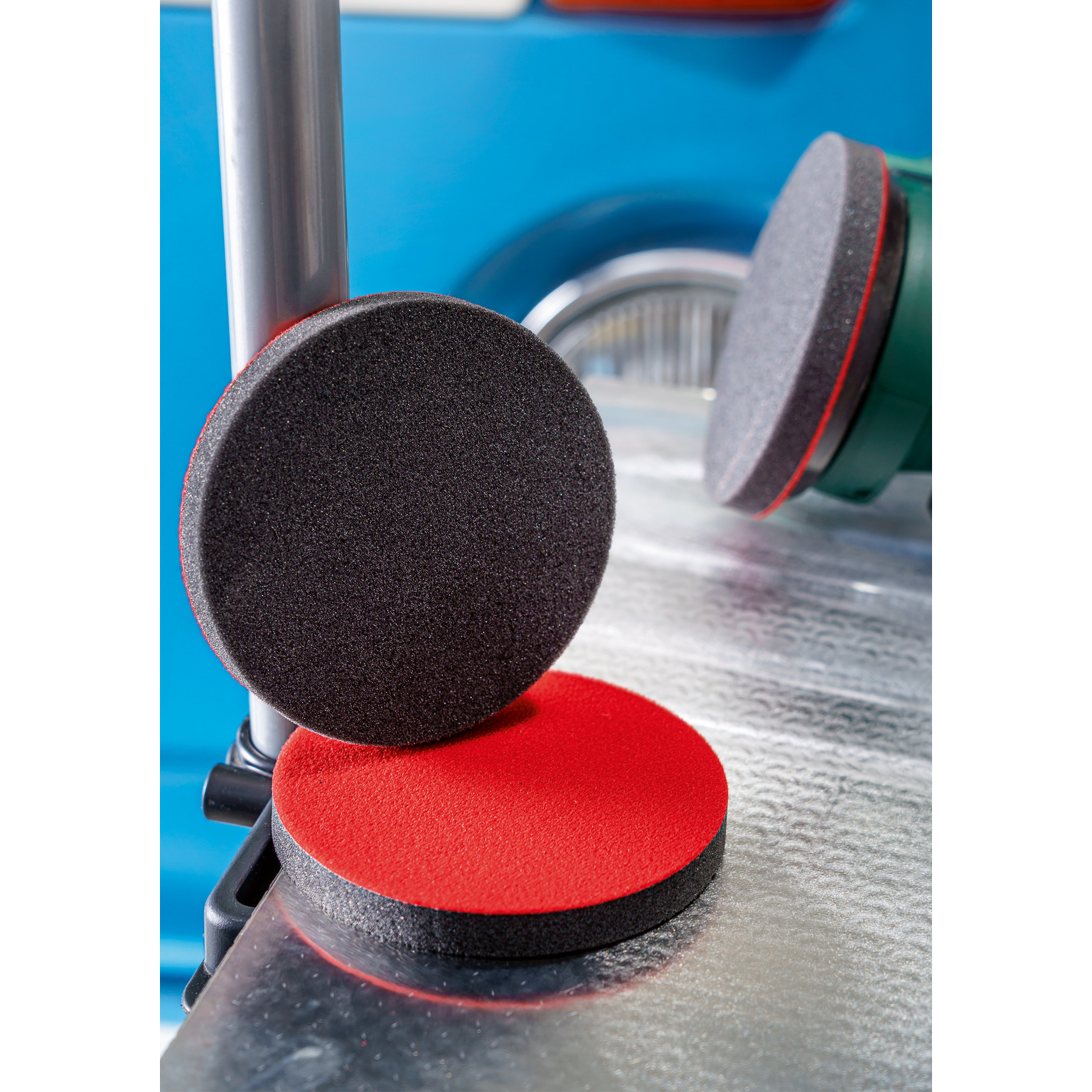 För vaxning och polering - Polersvampen för polermaskiner är avsedd för att gnida in vax och polera många olika typer av material, såsom väderslitna färger, sten, plast och järnfria metaller. Den är också idealisk för polering av smutsade, repiga eller förpolerade ytor. Den är lämplig för användning med polermedel eller för att arbeta in tätningsmedel på jämna eller rundade ytor. Avsedd för användning med polermaskiner. Passar alla maskiner med kardborre oavsett hålbild.