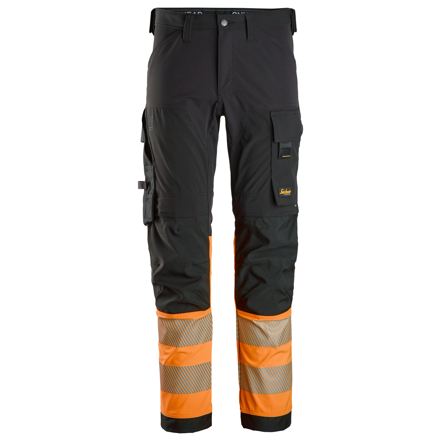 Dessa varselbyxor med smal passform är avsedda för dem som arbetar inom byggbranschen, takläggning, logistik och mycket mer. De är tillverkade i fullstretchmaterial med figurnära passform och har vindtäta och ventilerande partier som ger skydd i blåsiga förhållanden och förbättrad rörelsefrihet. CORDURA®®-förstärkningar på knäna och tumstocksficka ger extra hållbarhet, medan förböjda ben och stretchpaneler ger en bekväm passform med god rörlighet. Byxorna är certifierade enligt EN ISO 20471 klass 1 för god synlighet och ger tillförlitligt skydd vid dåliga ljusförhållanden. De har dessutom KneeGuard™-systemet för knäskydd enligt EN14404. Byxorna har dessutom verktygshållare med kardborrelåsning, segmenterat reflextryck runt benen, en utanpåficka med ID-korthållare och påsydda bakfickor.