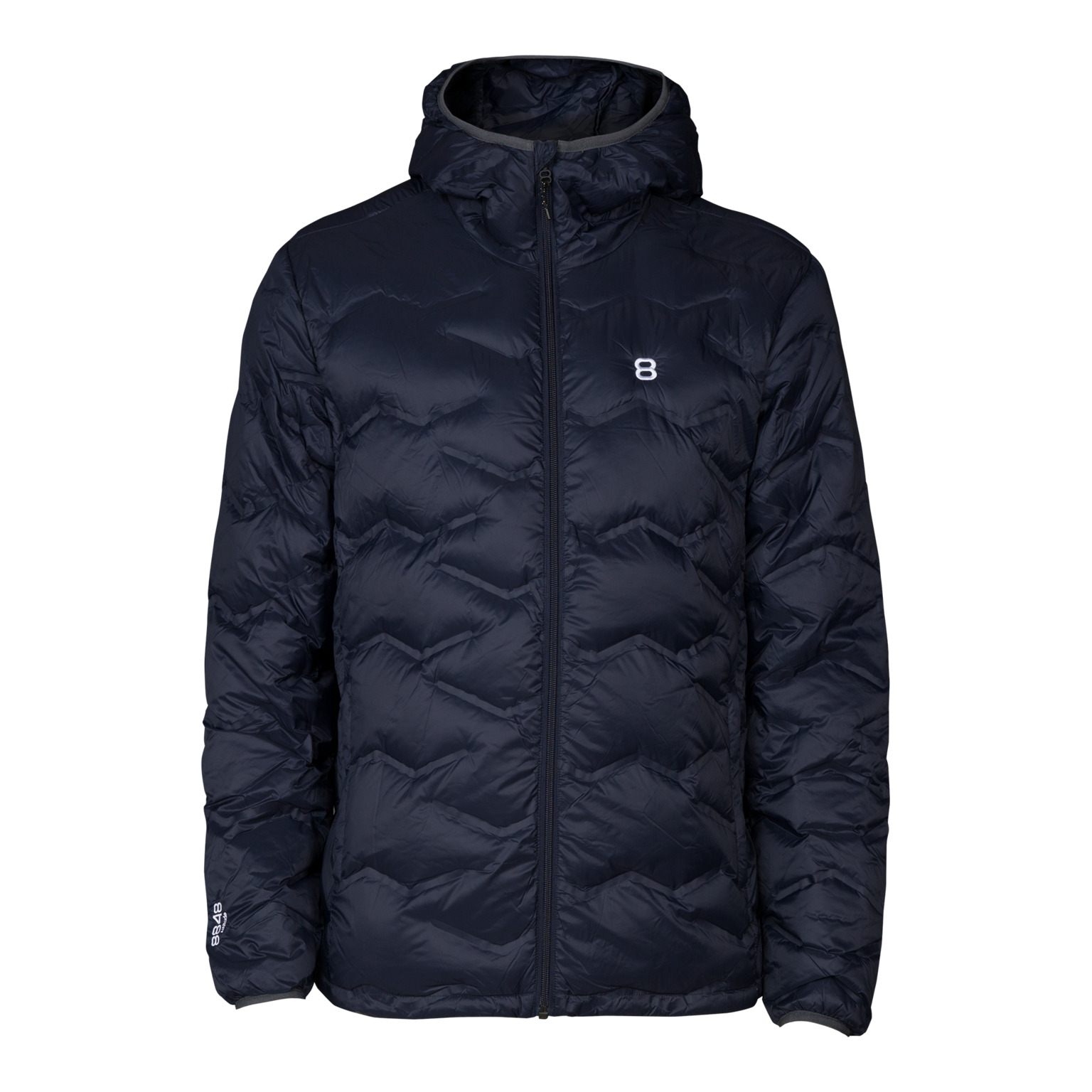 Sculpt Jacket är en multiliner med Ultra Sonic-teknologi och lättviktsdun av premiumkvalitet. Kan med fördel användas både som jacka och som värmande mellanlager. Extra hög krage, justerbar dragsko i nederkant samt smidigt, elastiskt kantband i ärmslut och i huva som smiter åt lagom för en bekväm passform. Två ytterfickor med dragkedja. Vadderad med 650fp premiumdun (90/10). 8848 Altitude använder ankdun som är en restprodukt från livsmedelsindustrin och som aldrig plockas från levande djur. Alla produkter från 8848 Altitude är 100% fria från fluorkarboner!