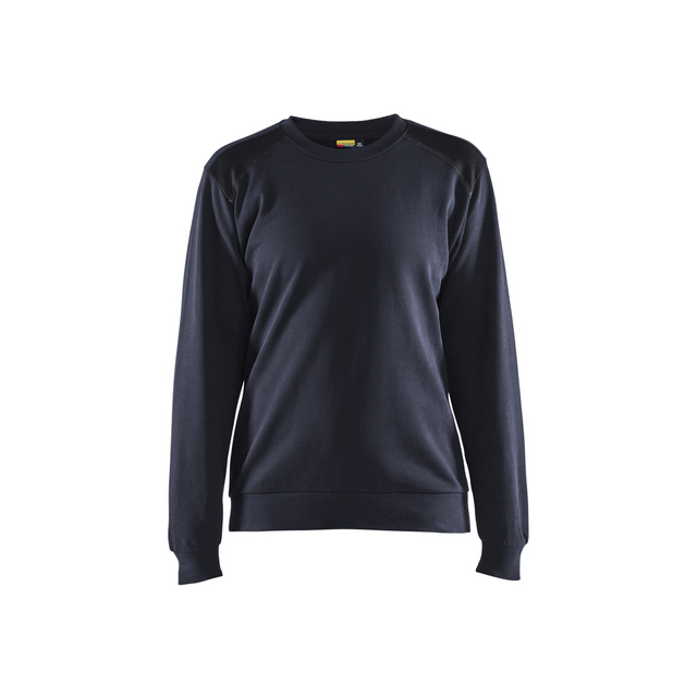 Bekväm, smidig och rundhalsad sweatshirt i dampassform med kontrastfärger på axelpartierna. Har ribbstickade muddar och är förstärkt i nack- och axelsöm för extra hållbarhet. Denna tröja passar alldeles utmärkt till att profilera ert företag med. Lanseras också i herrmodell 3480.