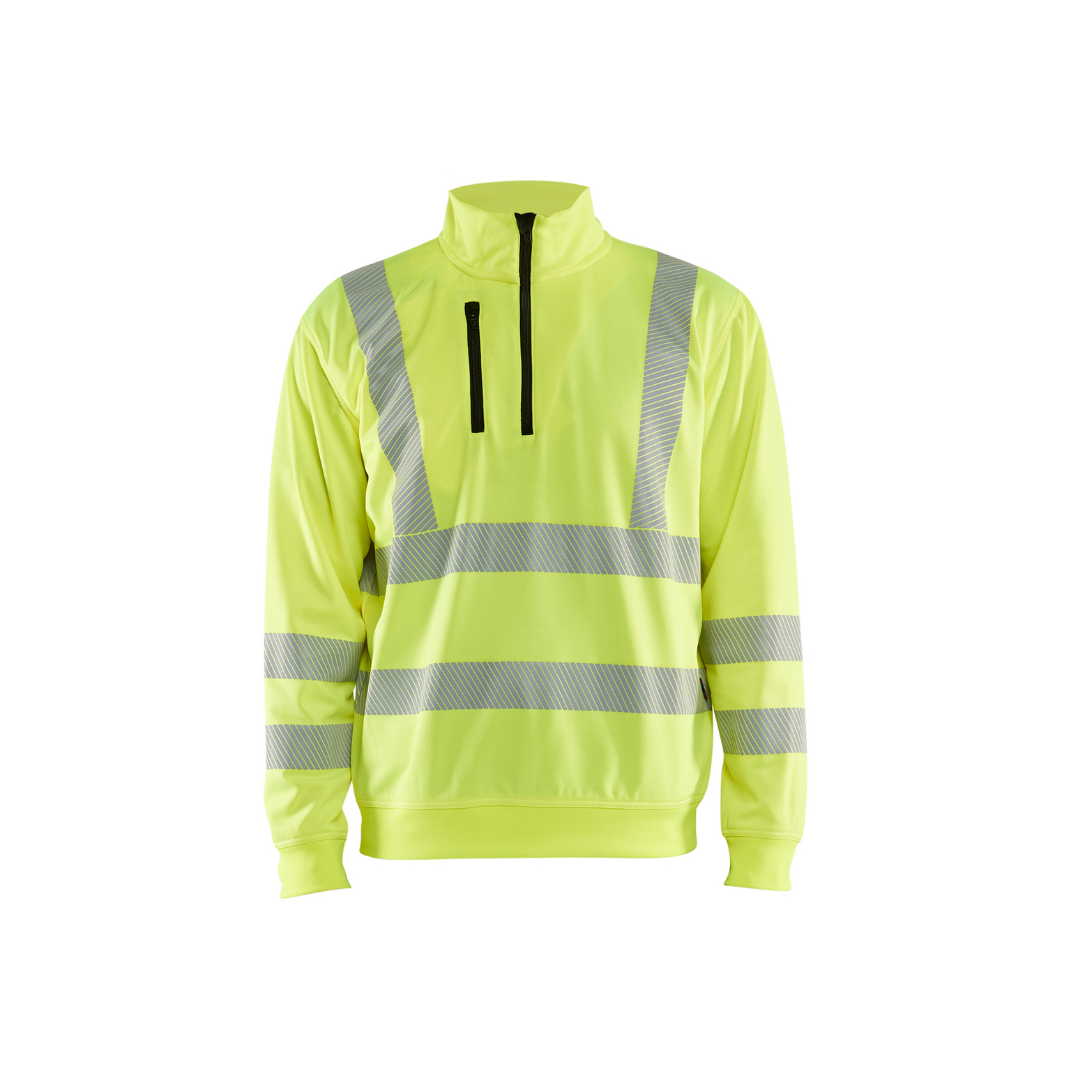 Sweatshirt i klass 3-varsel med segmenterade reflexer för extra synbarhet. Varseltröjans material är en mjuk och härlig fleece som ger en svårslagen kombination av säkerhet och komfort. Har krage, half-zip, bröstficka och ribbstickade muddar. Kan industritvättas. Certifierad enligt EN ISO 20471 Klass 3. Industritvätt EN ISO 15797.