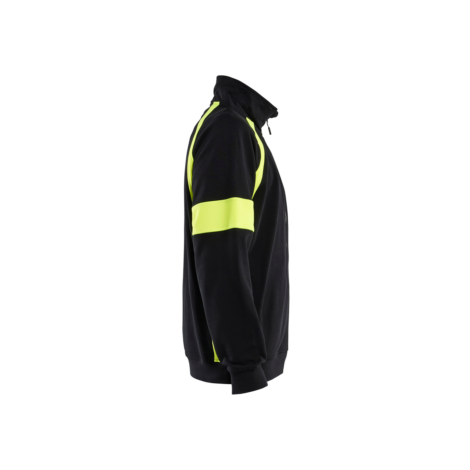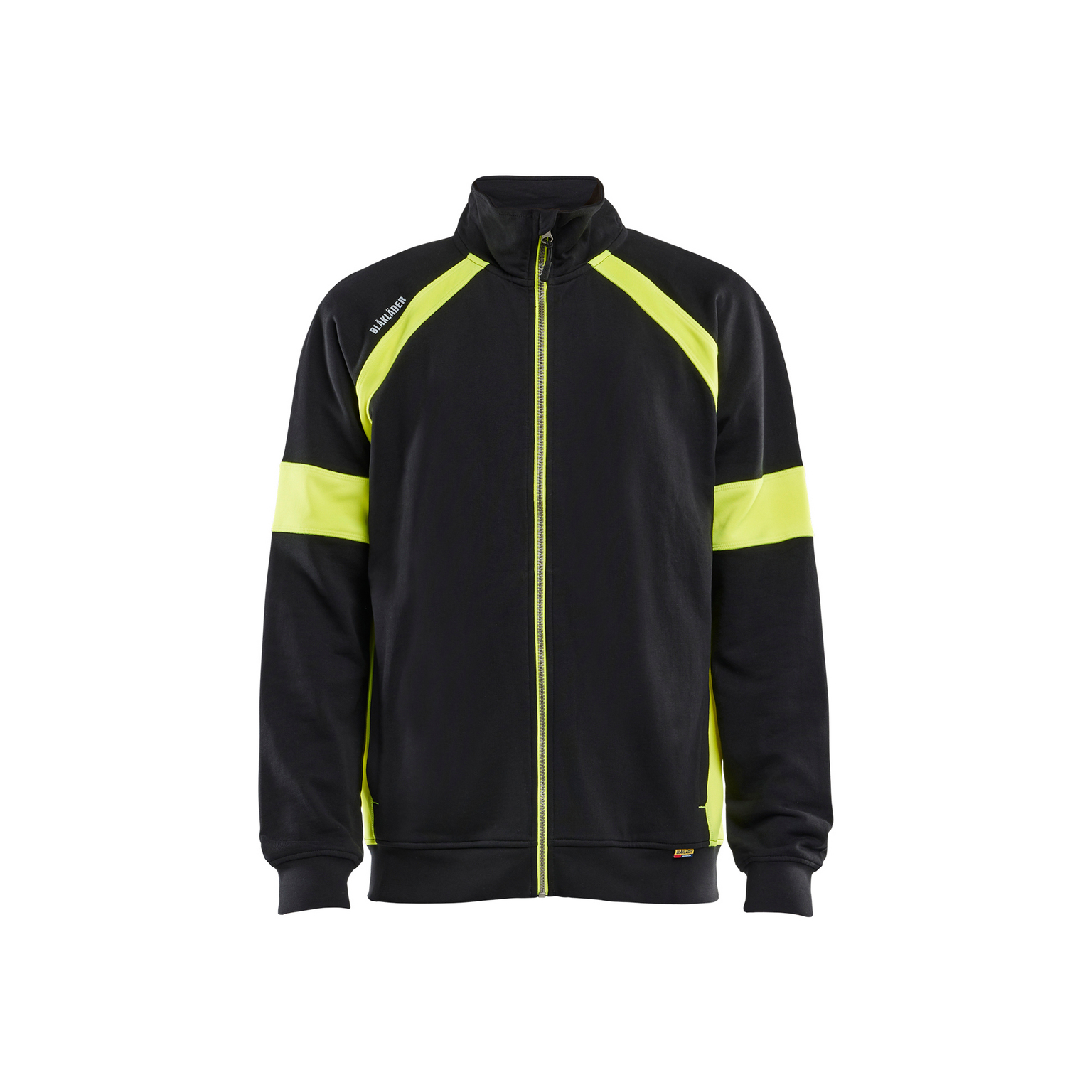Sweatshirt med varselfunktion och full dragkedja. Denna plagg är utformad för att ge ökad synlighet och säkerhet i arbetsmiljöer där det är viktigt att synas. Kombinationen av svart och varselgul färg gör den lämplig för användning i olika miljöer där kontrast och synlighet är avgörande.