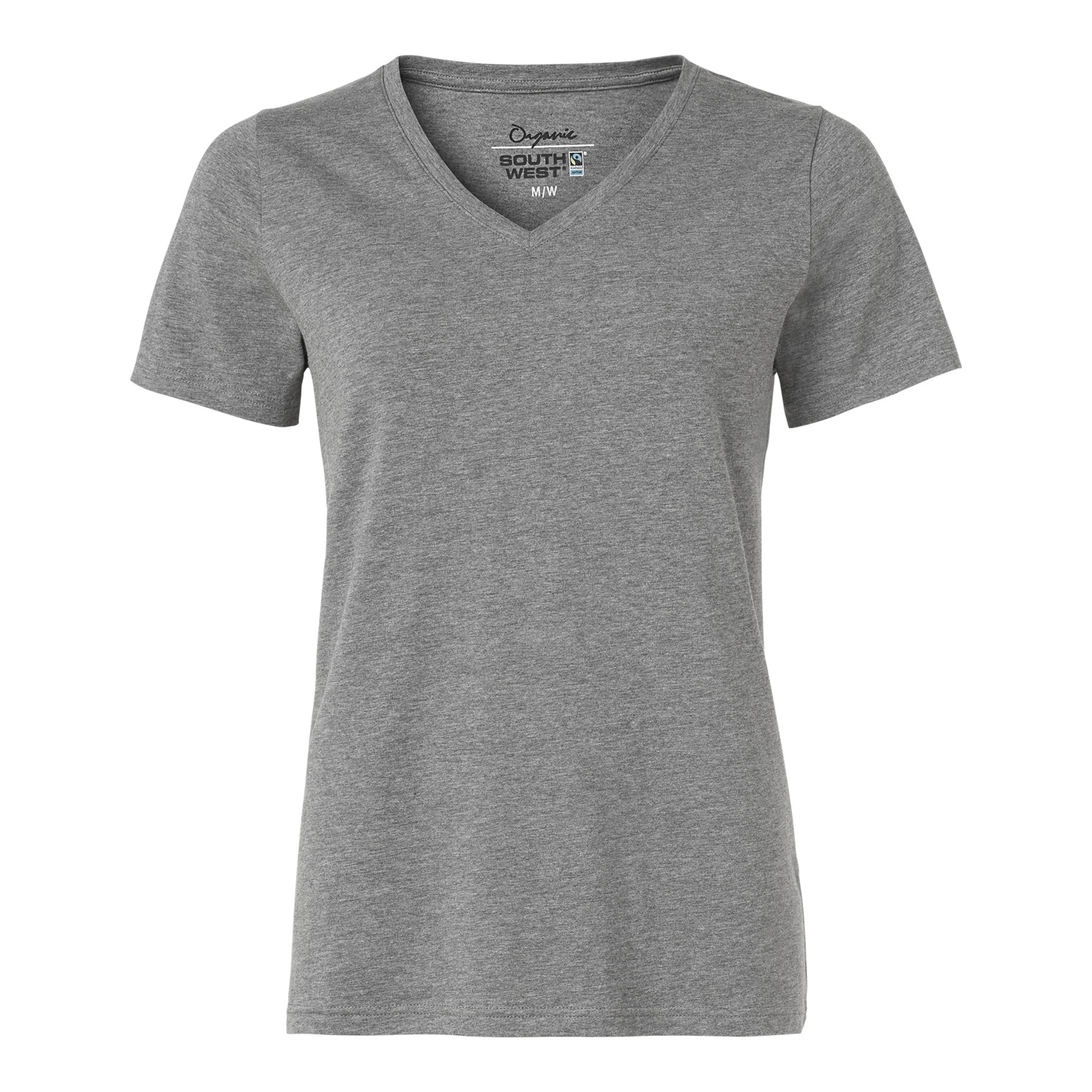 T-shirt gjord av Fairtrade-certifierad bomull med stretch för skön passform. Snygg v-ringad hals och fin dampassform. GOTS-certifierade färger är white, navy, dark olive, cerise, indigo och black. OCS-certifierad färg är medium grey melange.