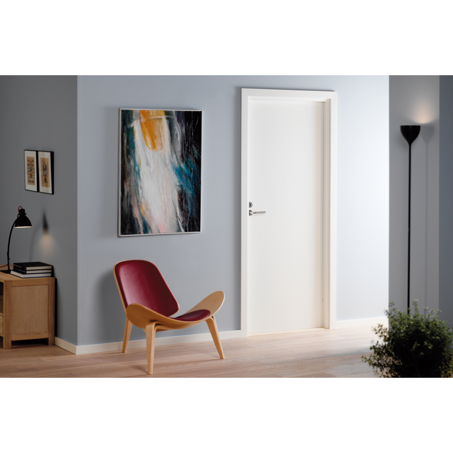 Massivdörr med slät och extra slitstark yta som är lätt att rengöra. Karm köpes separat.