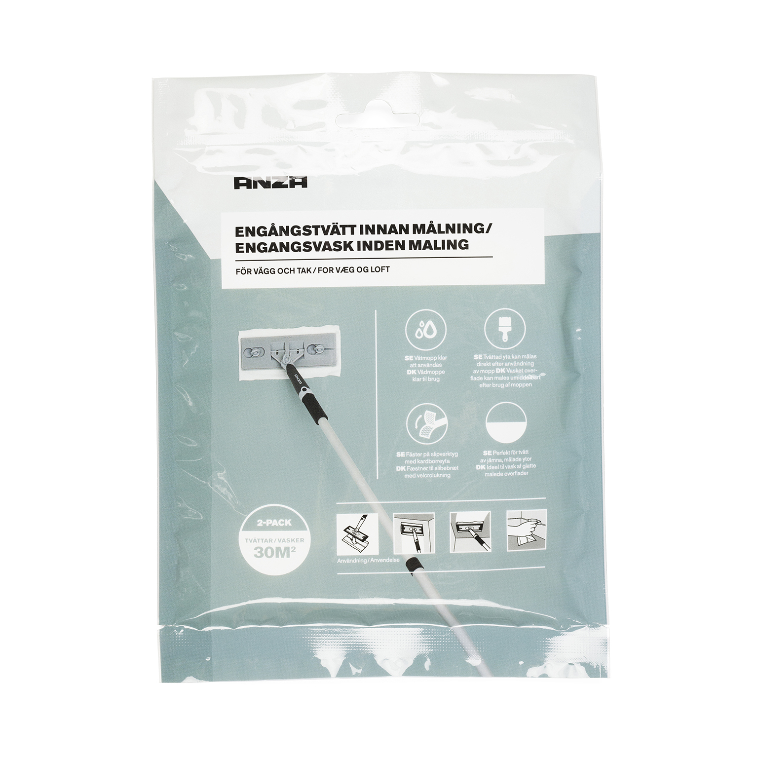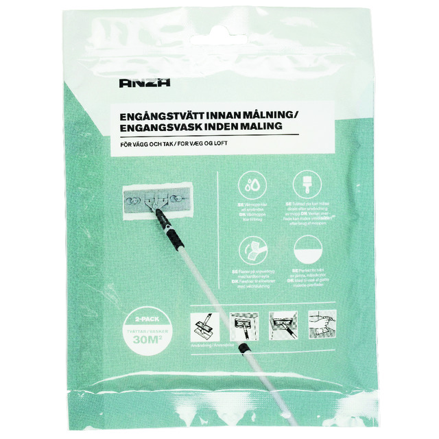 Engångstvätt innan målning för vägg och tak. Använd den för sig på lister och hörn eller fäst den på ett slipverktyg med kardborreyta för att nå upp på väggar och tak. 2-pack. Räcker till 30 kvm.