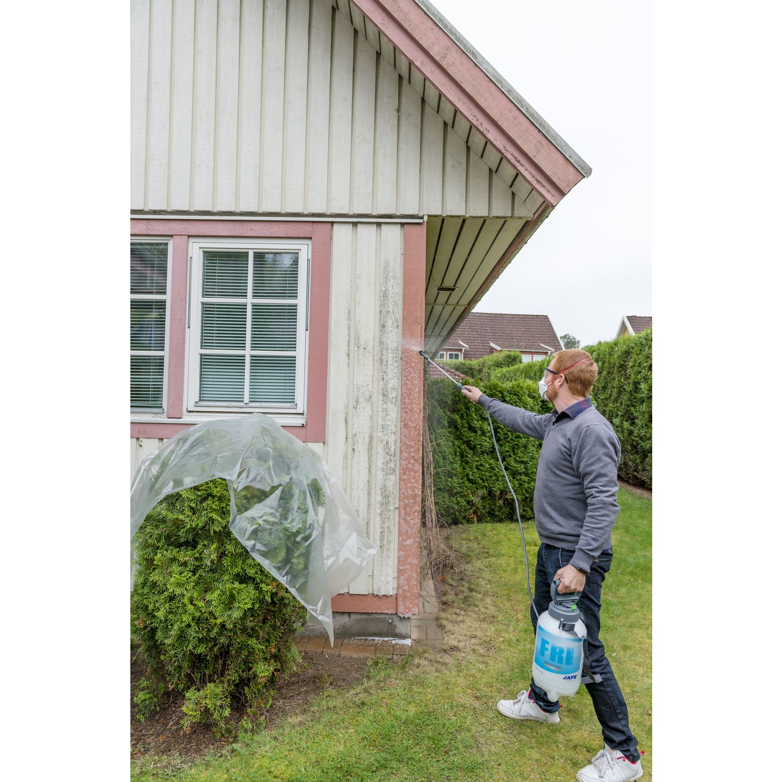 Bruksanvisning Späd Prick-Fri med vatten. Applicera med lågtryckspruta, borste eller pensel och gnuggas in i ytan. Låt verka i minst ett dygn, gärna längre. Om ytorna ska målas tvättas ytorna med Målningstvätt och om de inte ska målas efter behandling används Underhållstvätt. Fukta ytorna med vatten innan applicering av tvättmedel och bearbeta ytan med borste eller tvättsvamp. Behandlingen upprepas tills allt mögel är borta. Låt ytorna torka i ca två veckor innan målning. Vid behandling av ytor med Falu rödfärg ersätts tvättningen med att ytorna borstas innan ommålning. Blommor, gräs mm bör täckas, växternas klorofyll kan påverkas. Prick-Fri är biologiskt nedbrytbart och påverkar inga byggnadsmaterial negativt.