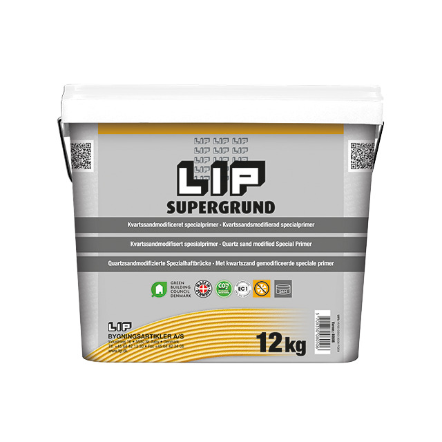 Användningsområde LIP Supergrund är en kvartssandsmodifierad specialprimer till olika typer av underlag såsom målade betonggolv, gammal keramik, trägolv, gips mm. Kan även användas på ytor där det normalt är svårt att få en tillräcklig vidhäftning mot tillexempel epoxi, gjutasfalt, anhydridspackel,aluminium, PVC mm.