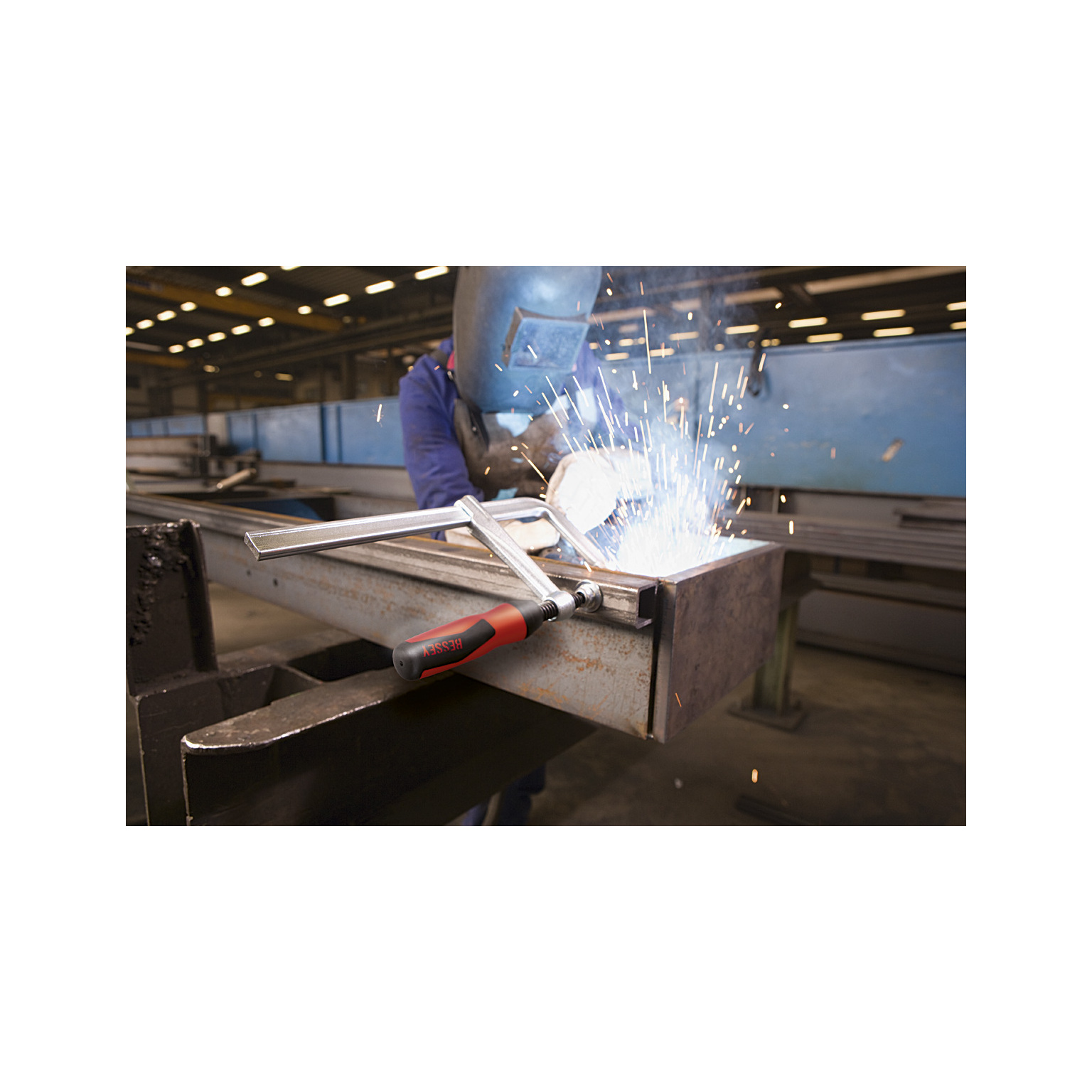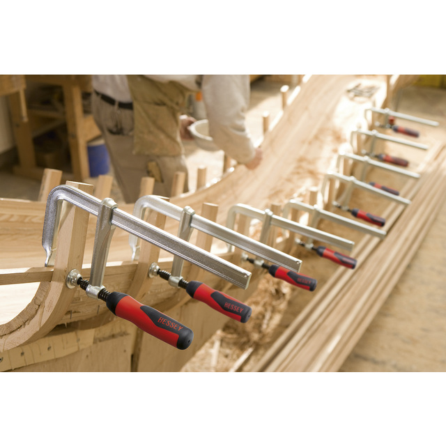 GZ skruvtving helt i stål med plasthandtag i tvåkomponentsmaterial 20 % högre fastspänningskraft per spindelvarv tack vare optimerad profilskena. Högsta säkerhet genom rak kraftöverföring på glidbygeln. Fastspänningskraft upp till 6 000 N. Glidbygel och fast bygel seghärdade för fjädrande och elastisk fastspänning. Plasthandtag i tvåkomponentsmaterial. Tryckplattor kan bytas ut utan verktyg (från 80 mm gapdjup).