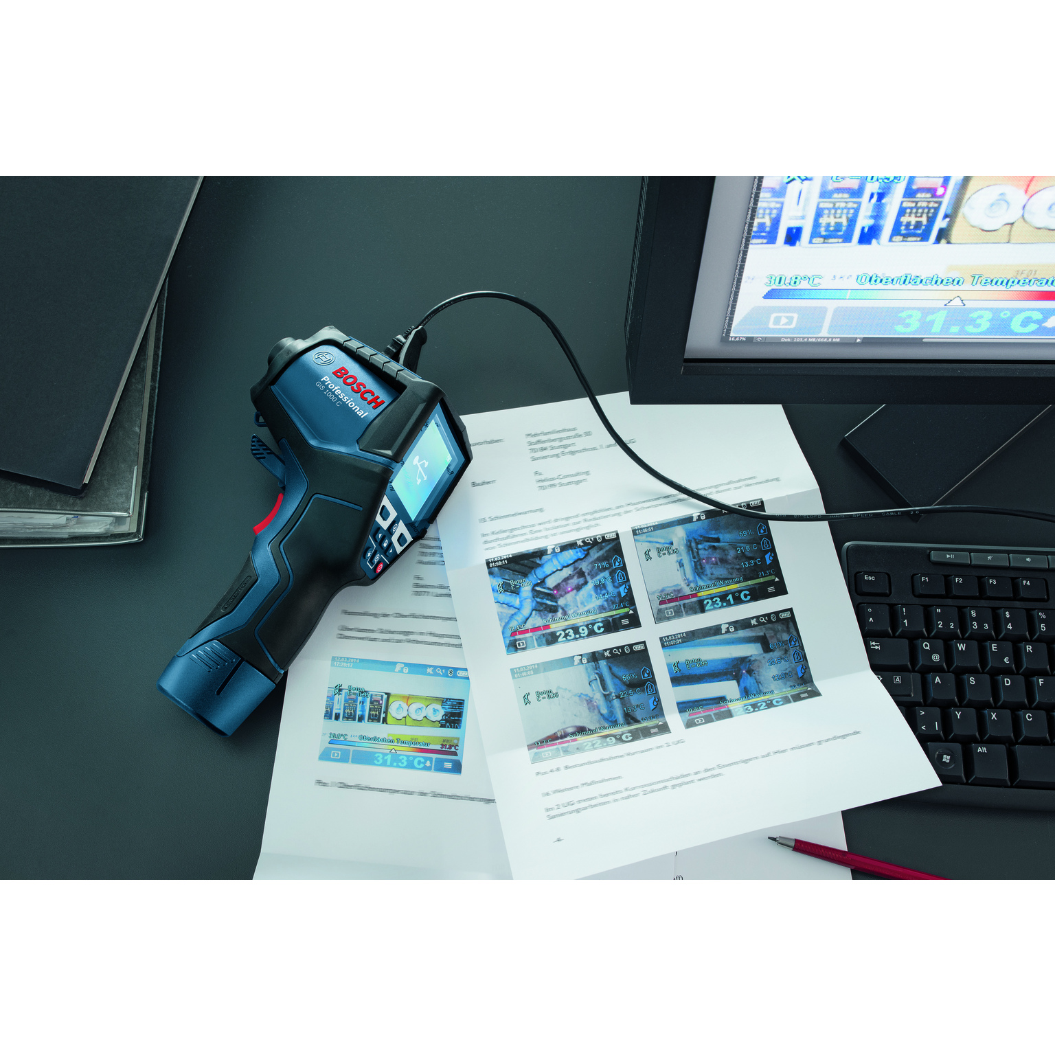 Integrerad kamera för omedelbar dokumentation av mätvärden på en bild Konnektivitet – via Bluetooth™ kan mätvärden på ort och ställe överföras till en Smartphone och sedan skickas via e-post Ljus LED för bättre bilder vid svåra ljusförhållanden Enkelt utbyte och smart dokumentering av uppmätta värden tack vare appen Measuring Master Snabbt acklimatiserande sensor för exakta mätningar av rumstemperatur och relativ luftfuktighet Enkelt användargränssnitt för intuitiv manövrering Dual Power Source: fungerar både med 10,8 V LI-batteri och med vanliga alkaliska batterier Överföring av bilder från galleriet GIS 1000 C till en Android terminalenhet