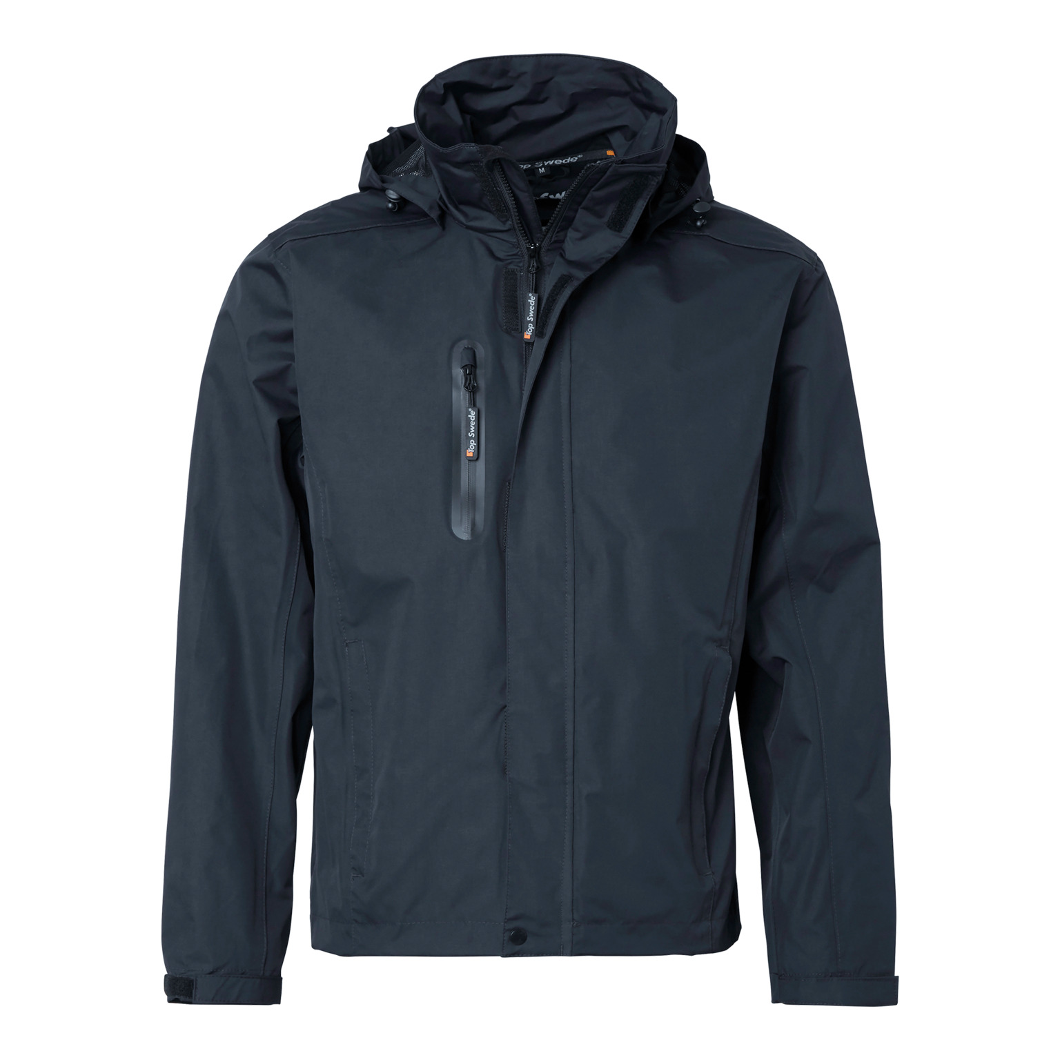 Jackan är utrustad med en dold dragkedja som går upp i kragen, vilket ger extra skydd mot vind och regn. Flera praktiska fickor finns tillgängliga, inklusive en bröstficka med vattentät dragkedja, två framfickor med dragkedja och två innerfickor med dragkedja, vilket ger gott om förvaringsutrymme för nödvändigheter. Huvan är både instoppningsbar och löstagbar, samt reglerbar för att ge bästa möjliga komfort och skydd.