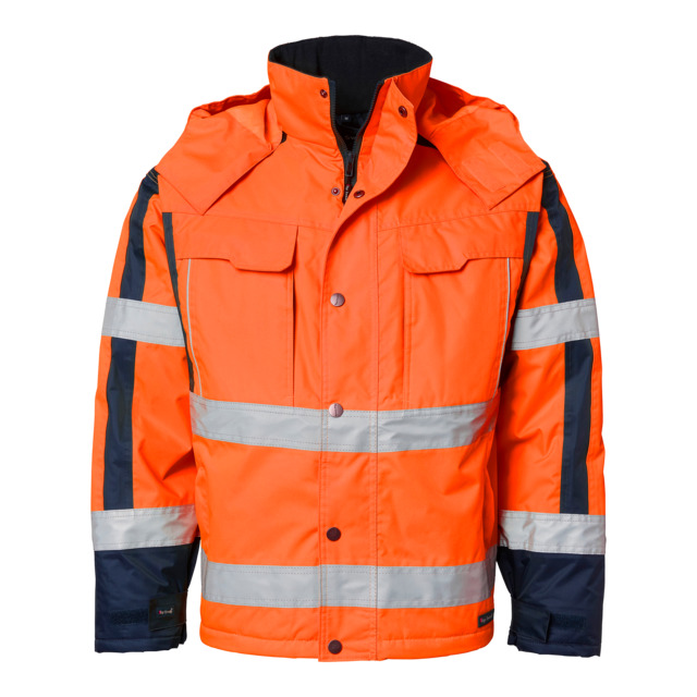 Jackan har även en uttagbar ID-kortsficka som kan döljas vid behov. Denna vinterjacka kombinerar funktionalitet, hållbarhet och komfort, vilket gör den lämplig för krävande arbetsmiljöer där pålitligt skydd är viktigt.