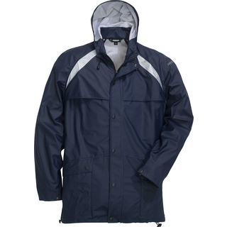 Varsel-regnjacka i stretchmaterial med svetsade sömmar och avtagbar huva. Utrustad med flera fickor och justerbara detaljer. Uppfyller EN ISO 20471 klass 3 och EN 343 klass 3/1.