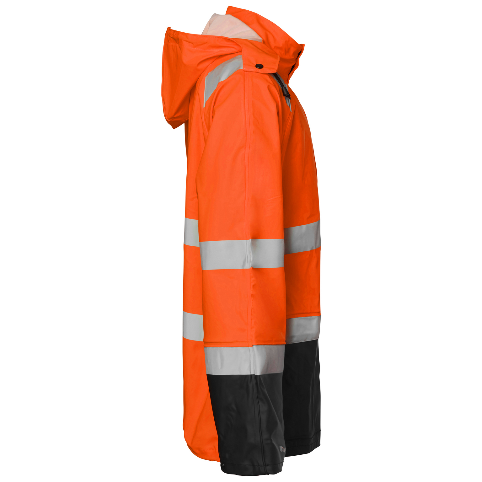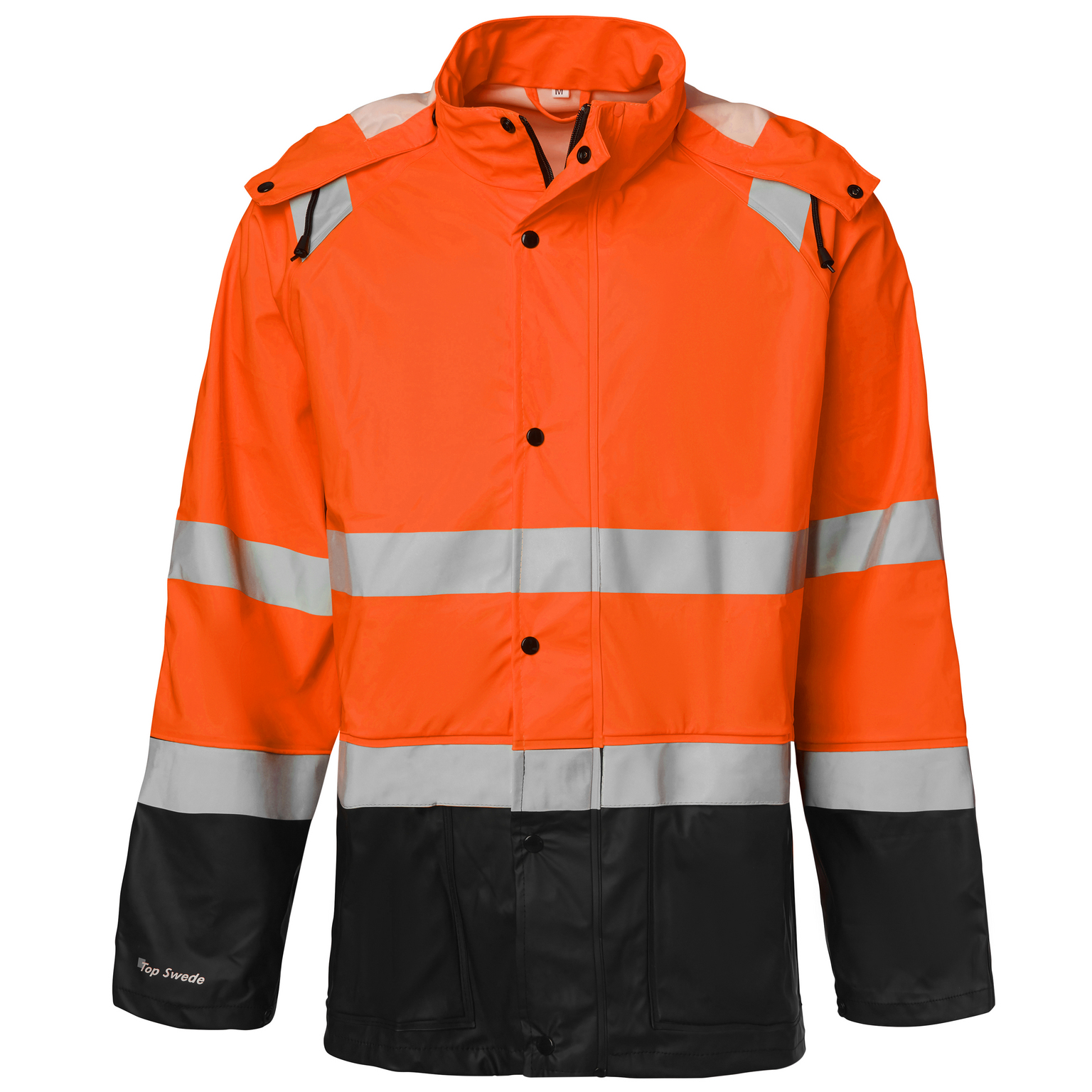 Regnjacka varsel i stretchmaterial med svetsade sömmar. Dragkedja med slå och tryckknappar. Dold ID-kortsficka, avtagbar huva, två framfickor, innerficka och telefonficka. Justerbart ärmslut.