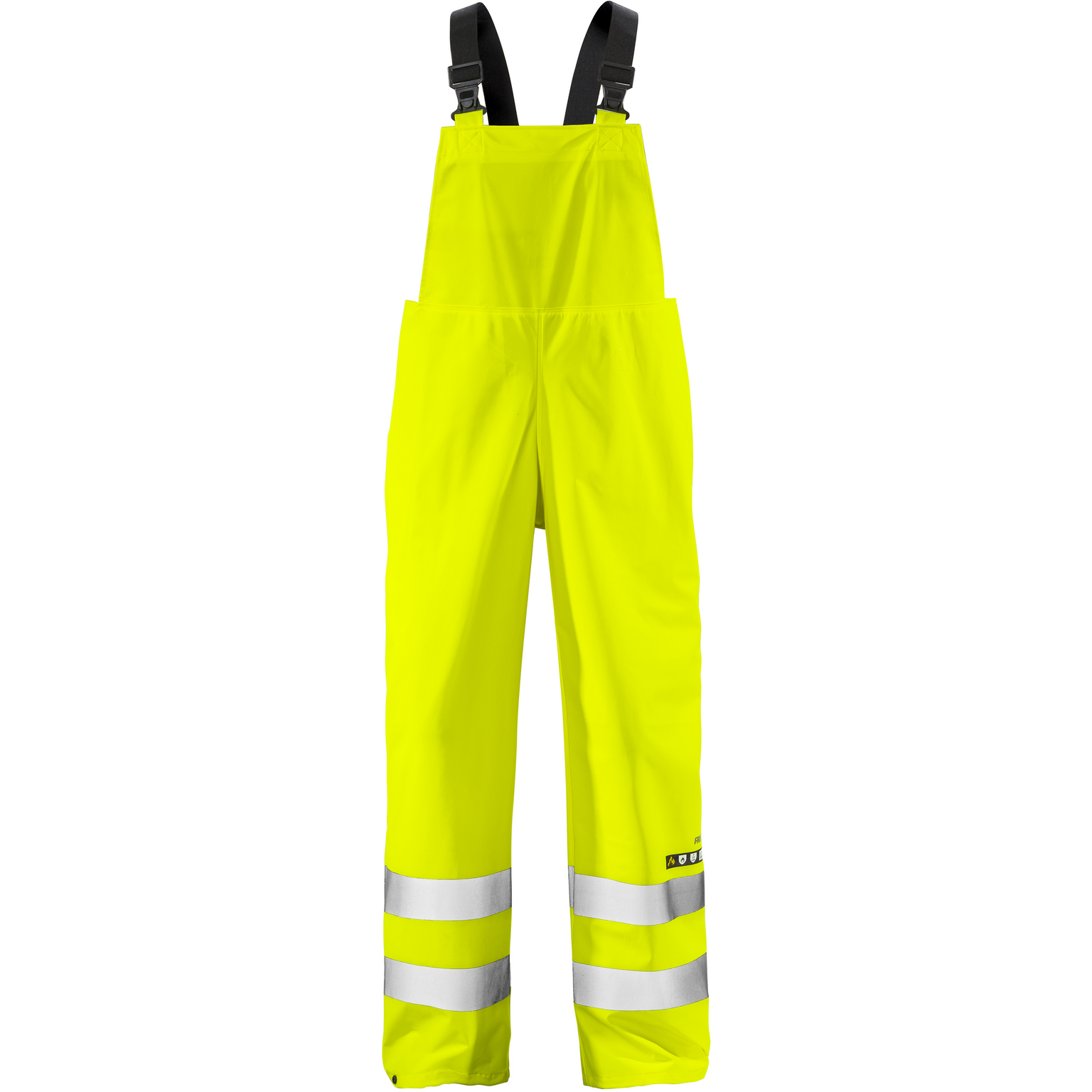 Skall bäras över flamskyddade plagg som är certifierade enligt EN ISO 11612 / Reglerbara elastiska hängslen / Bröstlapp i gummi / Reglerbar midja / Reglerbara benslut / Godkänd enligt EN ISO 14116 index 1, EN 1149-5, EN ISO 20471 klass 2 och EN 343 klass 3/1 / OEKO-TEX®-certifierad.
