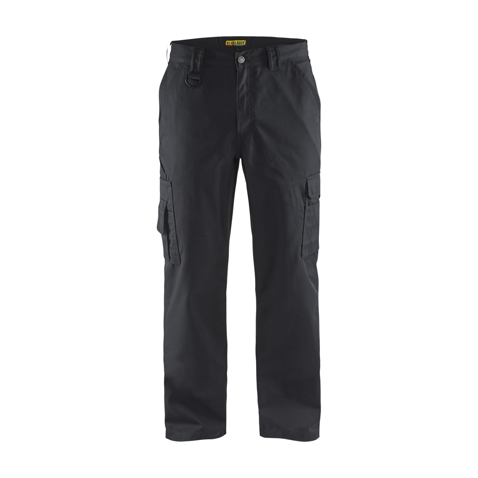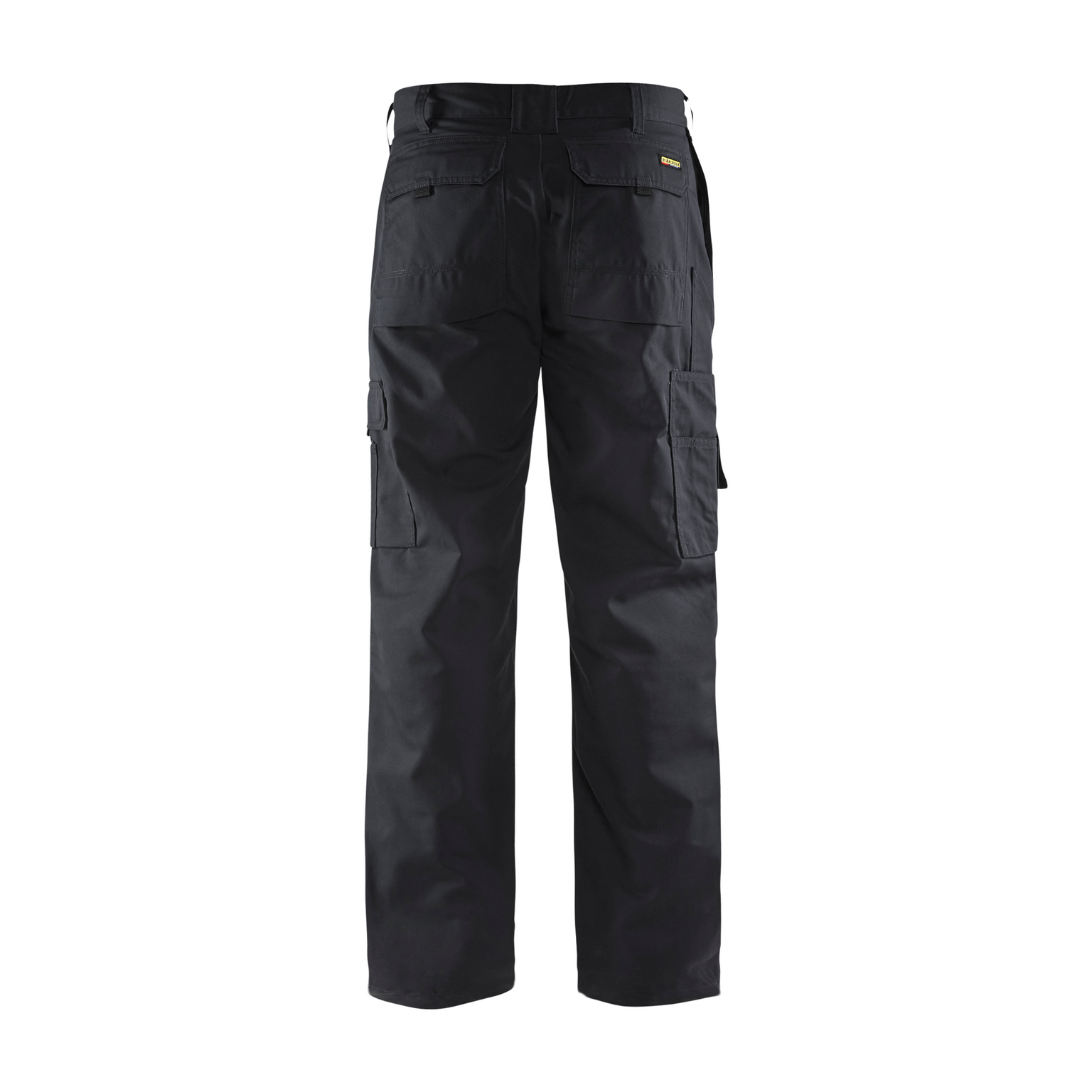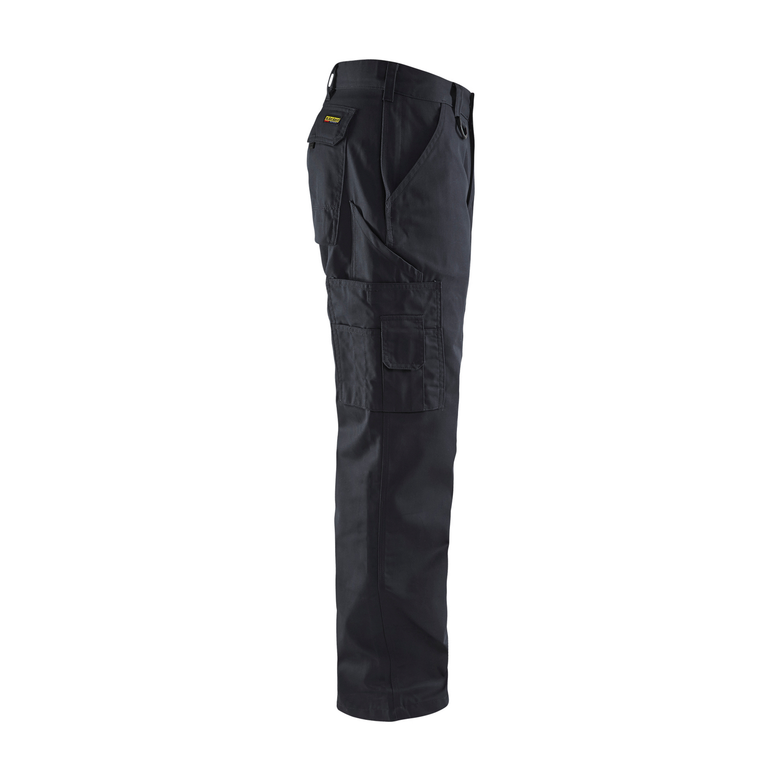 Tre fickor fram, en med dragkedja. Bakficka med bälg och lock med kardborrestängning. Benficka med tredelad pennficka och telefonficka. Tumstocksficka. Benficka med lock och tredelad pennficka. D-ring för att fästa ID-kort.