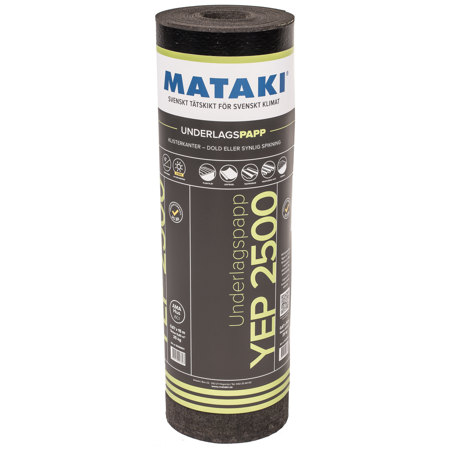 | Minsta taklutning (°) | 6 |