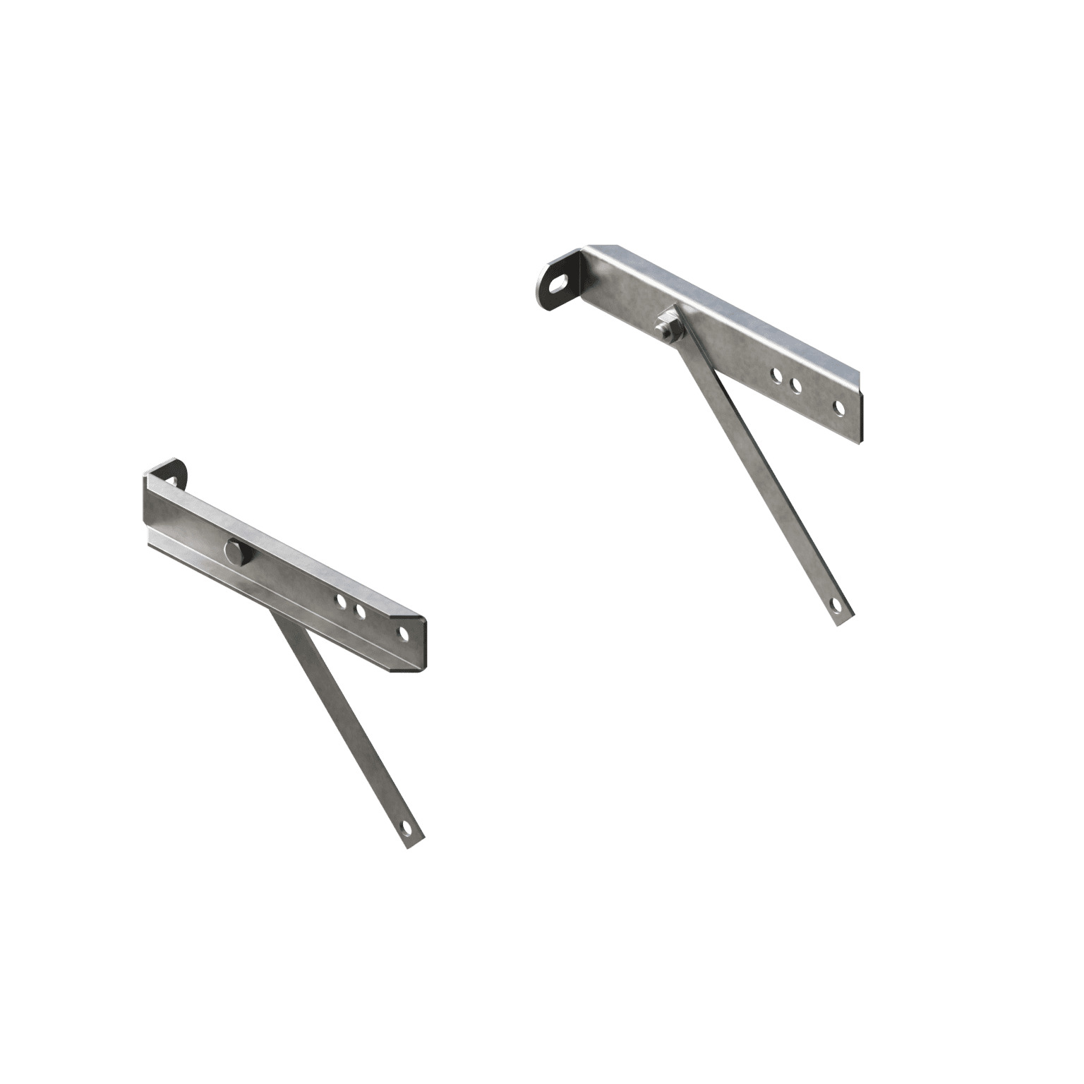 Konsoler för montage av fasadstege 220 mm utanför fasad. Montera alltid minst 2 st konsolsatser per fasadstege. Max C-avstånd mellan konsolsatser 2400 mm. Konsolsats monteras på 2 st Fästplåt fasadstege.